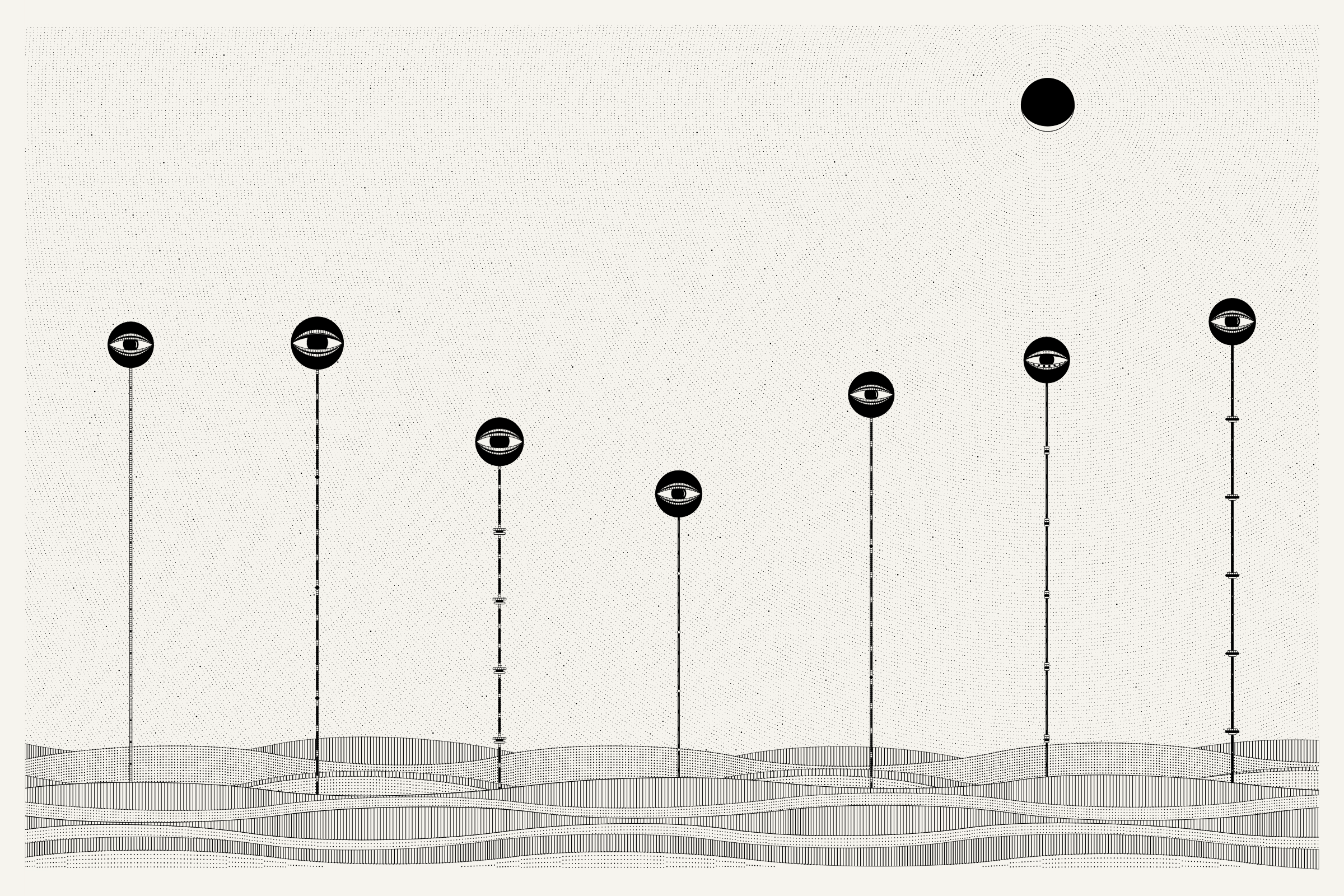 _Alan Ki Aankhen_ is an exploration of other-worldly cityscapes in the visual aesthetic of Fahad’s distinct style with pen and paper. The title, translated as _Alan’s Eyes_, alludes to Alan Turing’s machine intelligence test - a thought experiment foreshadowing a moment in which we can no longer differentiate between the real and the artificial. Though first proposed in 1950, the topic feels especially relevant today, as even our creative practices are being carried by shifting technological tides.