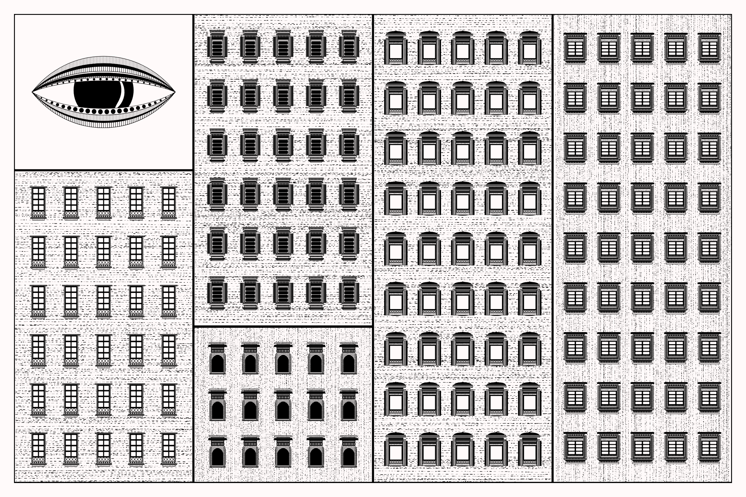 The algorithms and decision-making encoded into this generative art project intentionally imitate Fahad’s approach on traditional mediums - composition rules, textures, and overall themes. The visual elements are inspired by Fahad’s memories from his nomadic life. You’ll find intricate windows from Rajasthan, massive Egyptian pyramids rising from the horizon, a density of civilization only seen in New York, and the moon - a comforting and shared sight no matter where you stand.