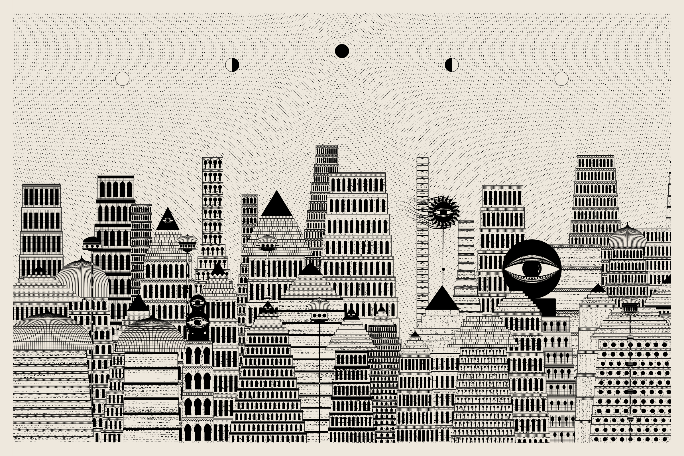 The algorithms and decision-making encoded into this generative art project intentionally imitate Fahad’s approach on traditional mediums - composition rules, textures, and overall themes. The visual elements are inspired by Fahad’s memories from his nomadic life. You’ll find intricate windows from Rajasthan, massive Egyptian pyramids rising from the horizon, a density of civilization only seen in New York, and the moon - a comforting and shared sight no matter where you stand.