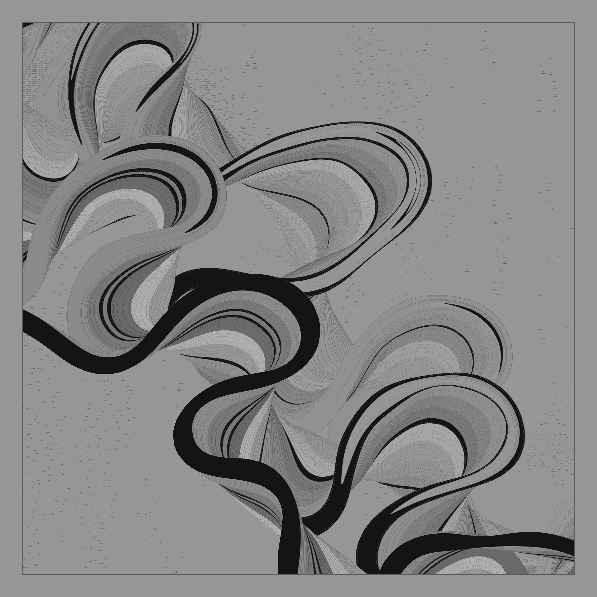 Ancient Courses is a generative experience that explores the aesthetics of meandering rivers and the settlements that form on their banks. The design is graphic and cartographic with bold color palettes rendered against map iconography and line sensibility. From the river banks, roads stretch across the landscape: sometimes a single access road, other times sprawling towns. The river meandering is simulated via a custom algorithm which closely models the real world process.