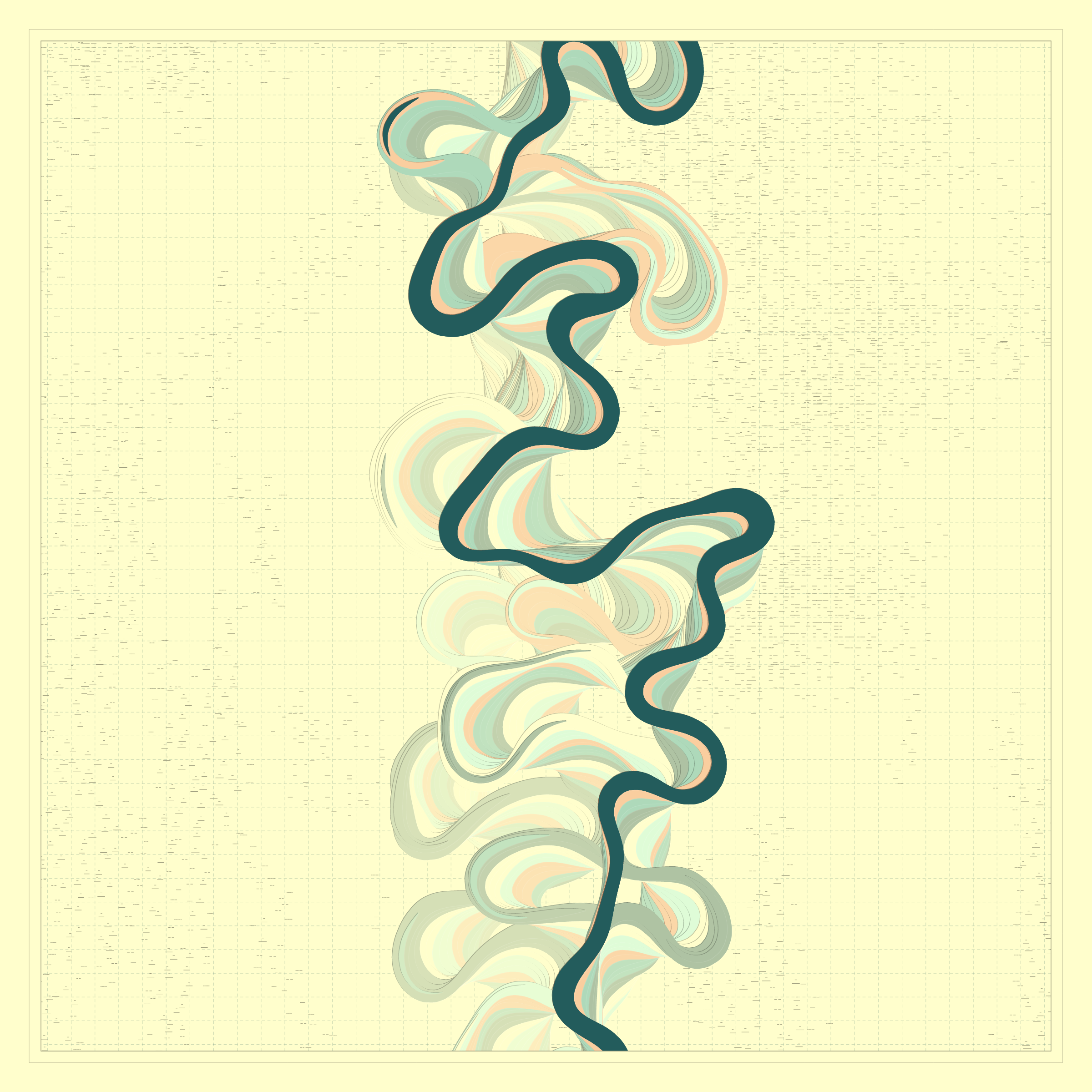 Ancient Courses is a generative experience that explores the aesthetics of meandering rivers and the settlements that form on their banks. The design is graphic and cartographic with bold color palettes rendered against map iconography and line sensibility. From the river banks, roads stretch across the landscape: sometimes a single access road, other times sprawling towns. The river meandering is simulated via a custom algorithm which closely models the real world process.