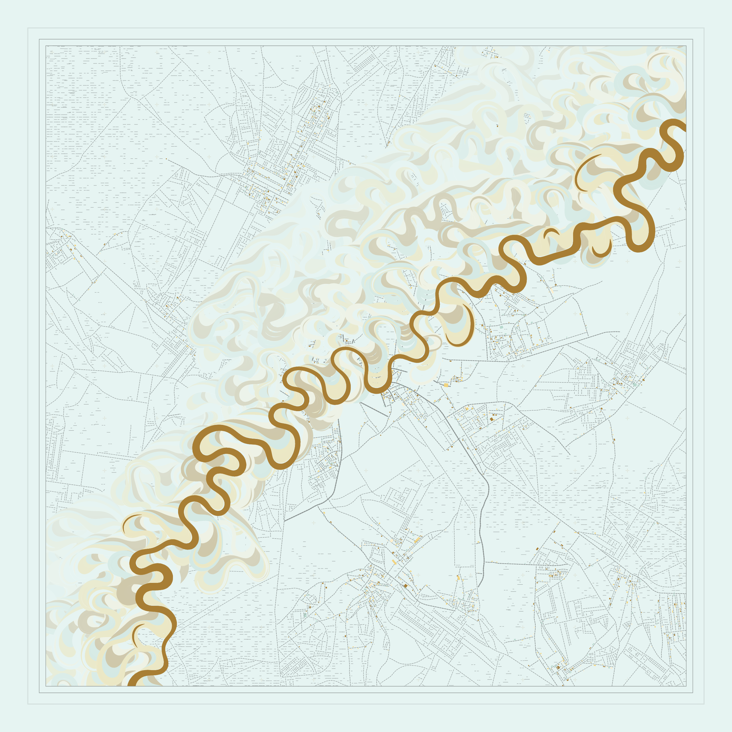 Ancient Courses is a generative experience that explores the aesthetics of meandering rivers and the settlements that form on their banks. The design is graphic and cartographic with bold color palettes rendered against map iconography and line sensibility. From the river banks, roads stretch across the landscape: sometimes a single access road, other times sprawling towns. The river meandering is simulated via a custom algorithm which closely models the real world process.