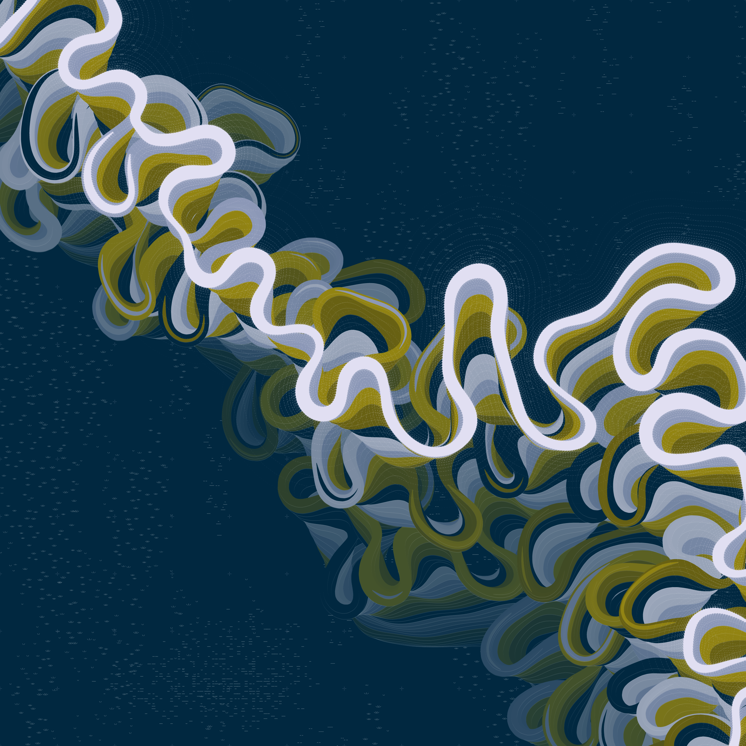 Ancient Courses is a generative experience that explores the aesthetics of meandering rivers and the settlements that form on their banks. The design is graphic and cartographic with bold color palettes rendered against map iconography and line sensibility. From the river banks, roads stretch across the landscape: sometimes a single access road, other times sprawling towns. The river meandering is simulated via a custom algorithm which closely models the real world process.