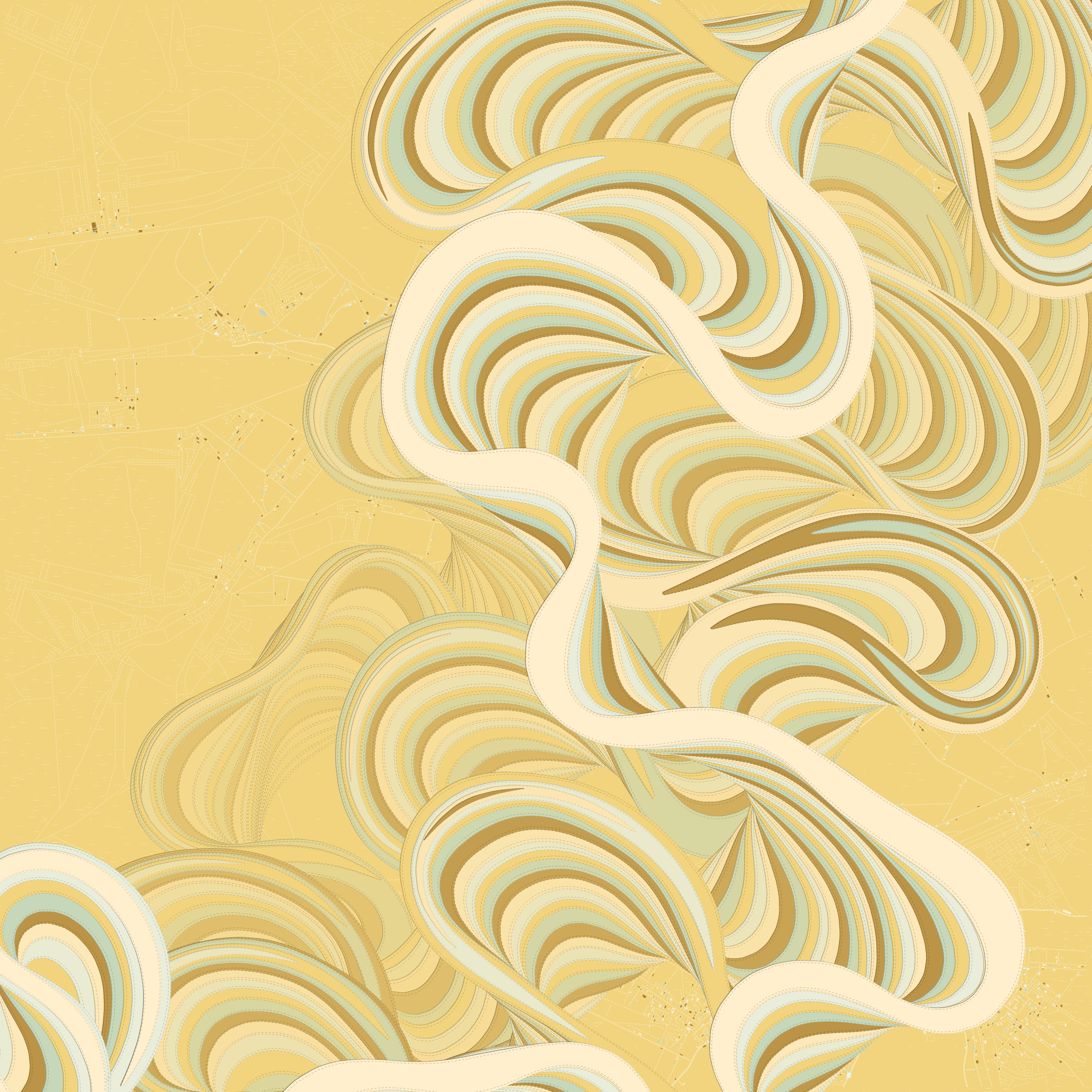 Ancient Courses is a generative experience that explores the aesthetics of meandering rivers and the settlements that form on their banks. The design is graphic and cartographic with bold color palettes rendered against map iconography and line sensibility. From the river banks, roads stretch across the landscape: sometimes a single access road, other times sprawling towns. The river meandering is simulated via a custom algorithm which closely models the real world process.