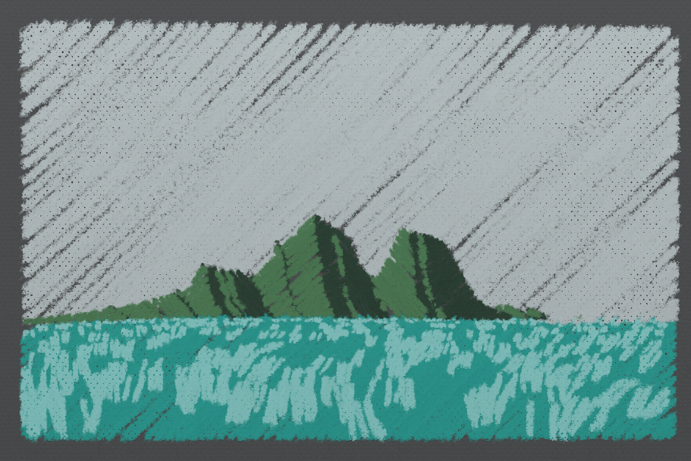 *Arcadia* is a homage to the fridge-worthy landscape art of our youth. Childhood techniques of creating art are re-imagined by the scribbles of a nostalgic, computer-assisted mind.