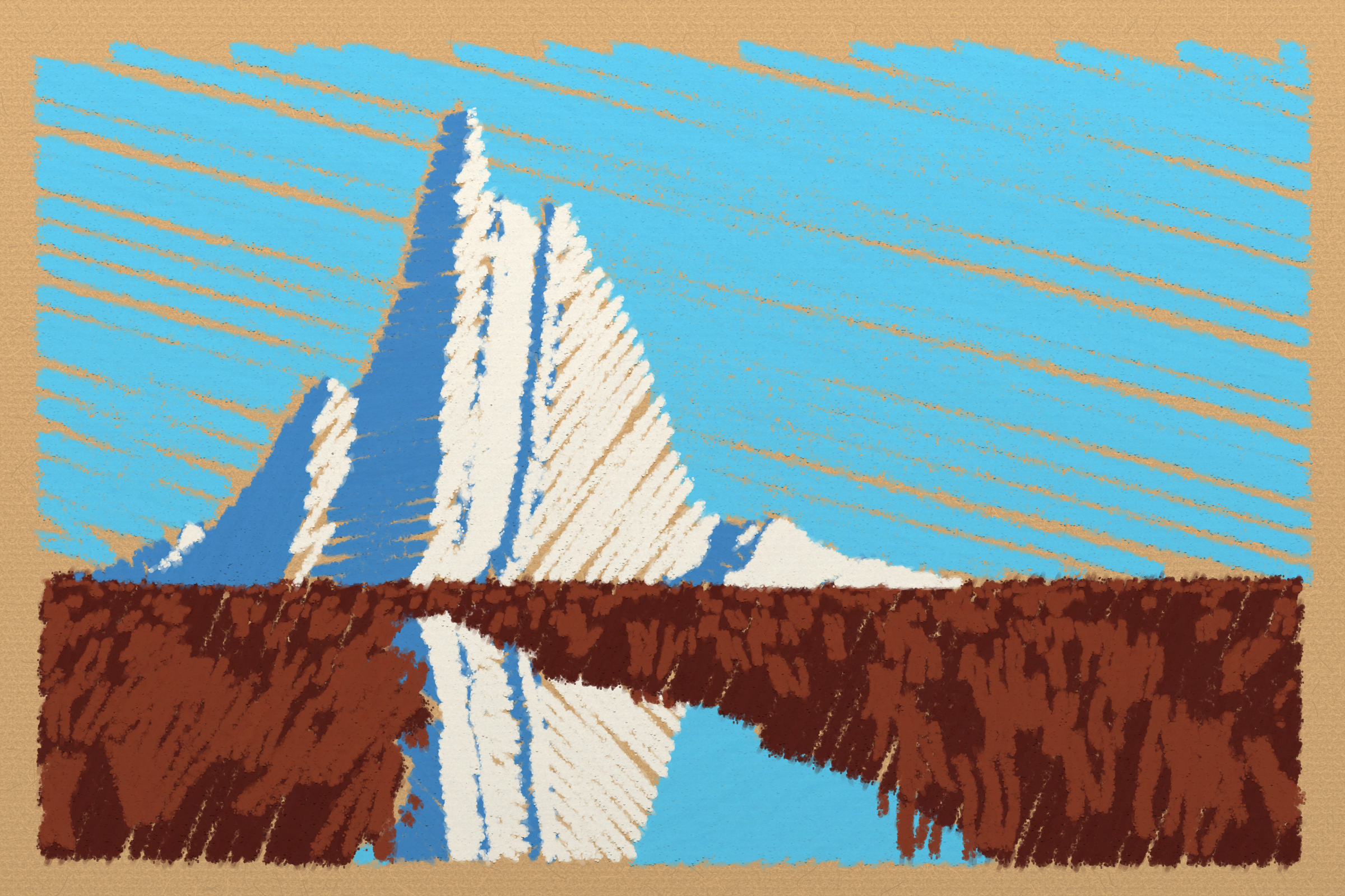 *Arcadia* is a homage to the fridge-worthy landscape art of our youth. Childhood techniques of creating art are re-imagined by the scribbles of a nostalgic, computer-assisted mind.