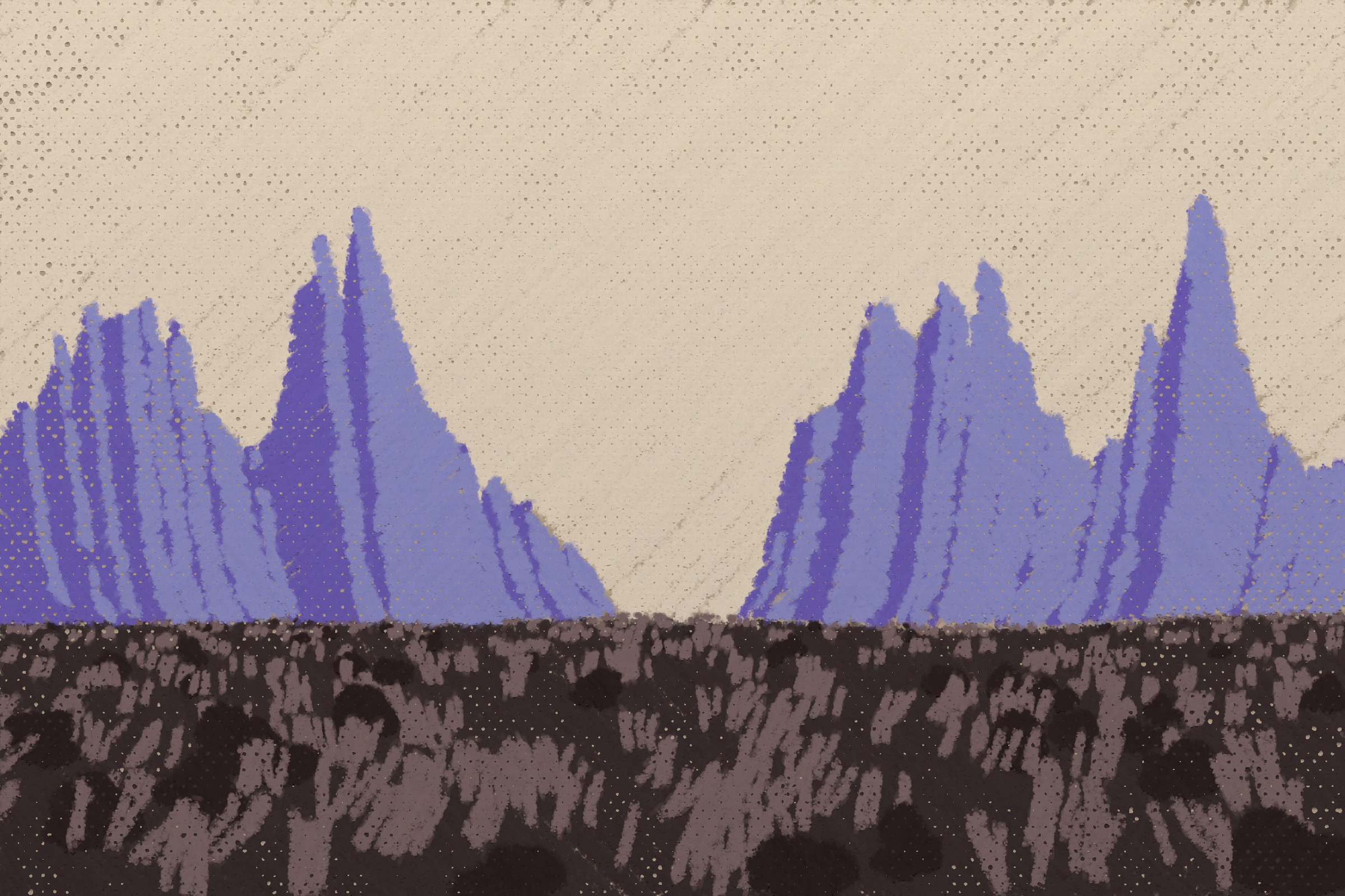 *Arcadia* is a homage to the fridge-worthy landscape art of our youth. Childhood techniques of creating art are re-imagined by the scribbles of a nostalgic, computer-assisted mind.