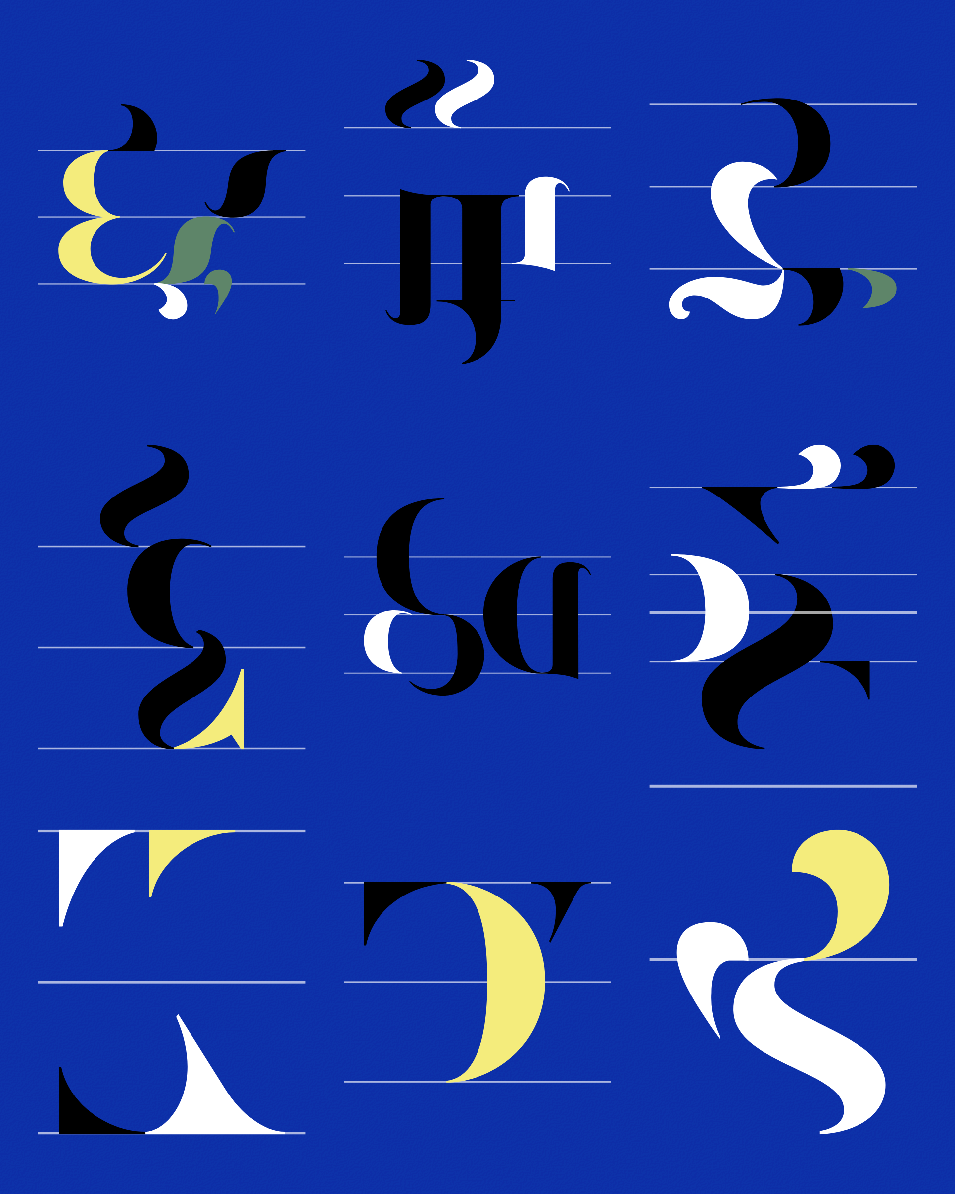 Abstract typographic elements slide together to create new characters. In some compositions, a single character is featured. In others, characters string together to form words and sentences, which the algorithm shapes into often-familiar layouts. // The type designer Gerard Unger said “it is almost impossible to look and read at the same time”. Asemica invites you to look without the burden of legibility. // Created by Emily Edelman, Dima Ofman, and Andrew Badr. Command-S to download a vector file. // Dutch Auction Tiers: 10 / 7 / 5 / 4 / 3.4 / 2.8 / 2.4 / 2 / 1.75 / 1.5 / 1.25 / 1 / 0.75 / 0.5 / 0.25 / 0.1