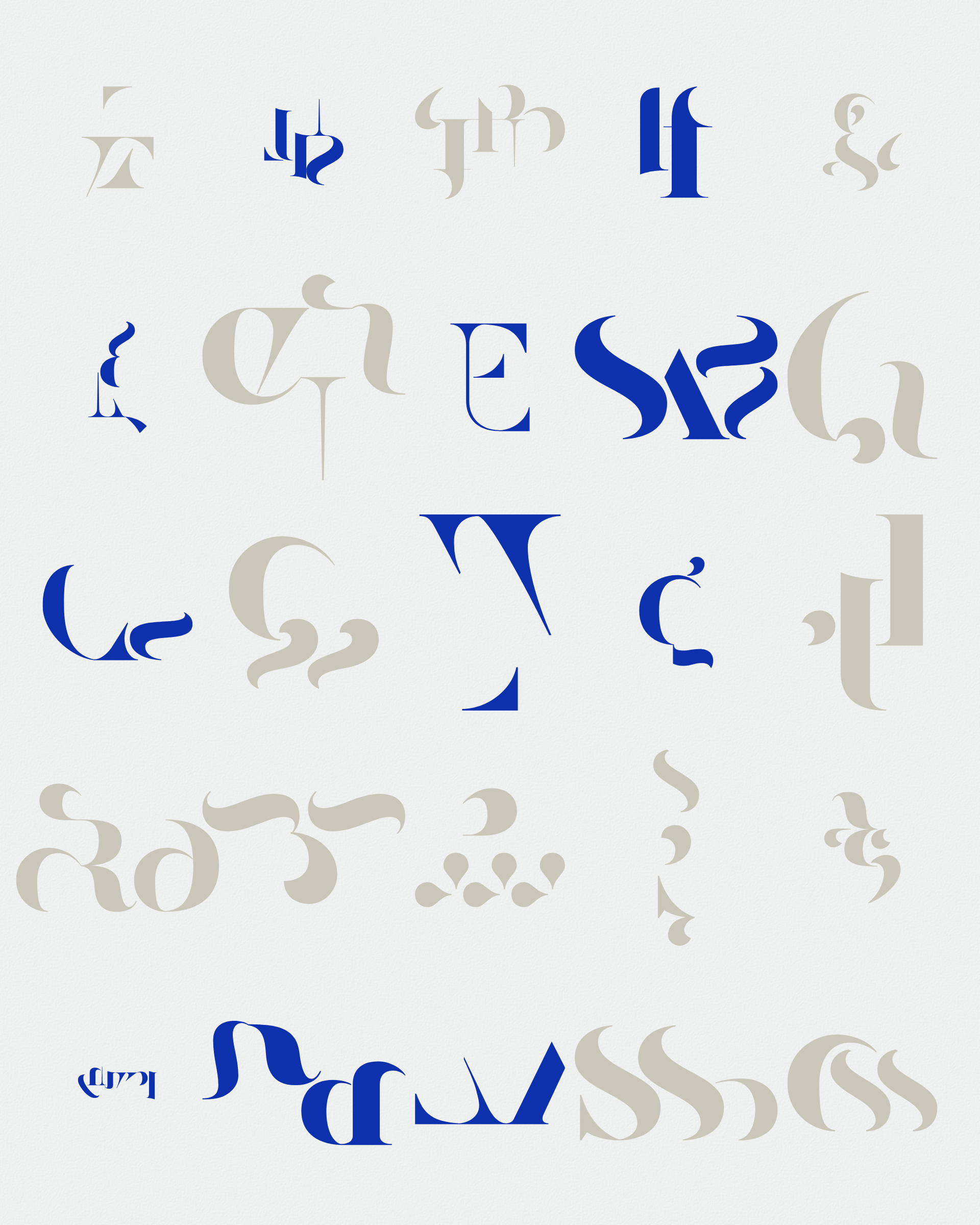 Abstract typographic elements slide together to create new characters. In some compositions, a single character is featured. In others, characters string together to form words and sentences, which the algorithm shapes into often-familiar layouts. // The type designer Gerard Unger said “it is almost impossible to look and read at the same time”. Asemica invites you to look without the burden of legibility. // Created by Emily Edelman, Dima Ofman, and Andrew Badr. Command-S to download a vector file. // Dutch Auction Tiers: 10 / 7 / 5 / 4 / 3.4 / 2.8 / 2.4 / 2 / 1.75 / 1.5 / 1.25 / 1 / 0.75 / 0.5 / 0.25 / 0.1