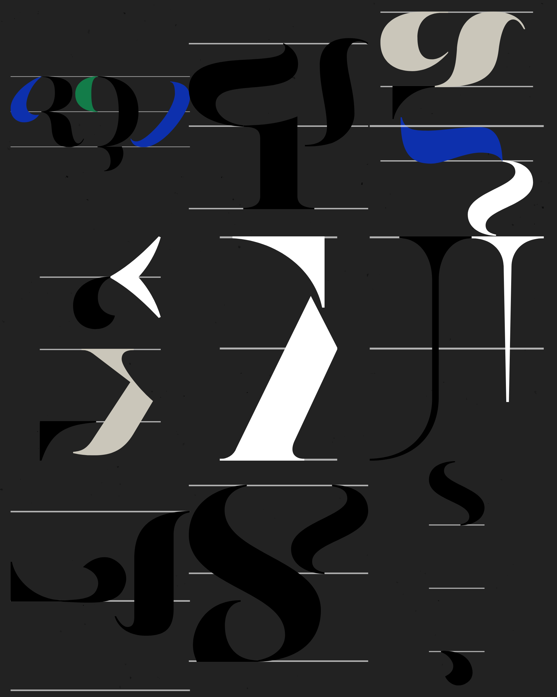 Abstract typographic elements slide together to create new characters. In some compositions, a single character is featured. In others, characters string together to form words and sentences, which the algorithm shapes into often-familiar layouts. // The type designer Gerard Unger said “it is almost impossible to look and read at the same time”. Asemica invites you to look without the burden of legibility. // Created by Emily Edelman, Dima Ofman, and Andrew Badr. Command-S to download a vector file. // Dutch Auction Tiers: 10 / 7 / 5 / 4 / 3.4 / 2.8 / 2.4 / 2 / 1.75 / 1.5 / 1.25 / 1 / 0.75 / 0.5 / 0.25 / 0.1