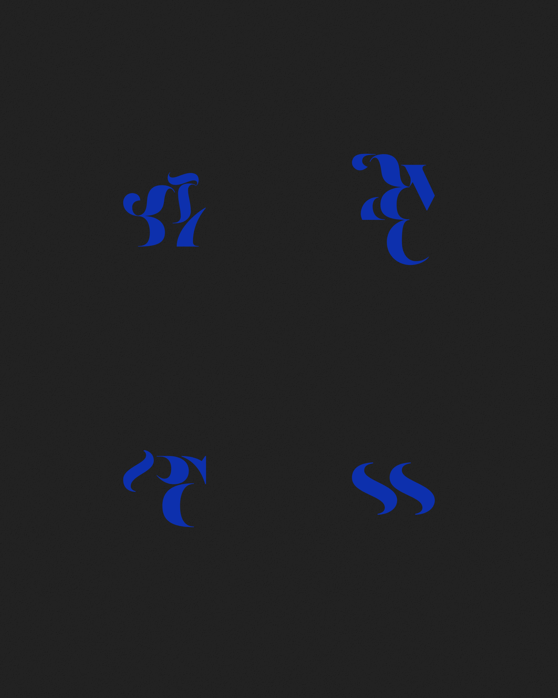 Abstract typographic elements slide together to create new characters. In some compositions, a single character is featured. In others, characters string together to form words and sentences, which the algorithm shapes into often-familiar layouts. // The type designer Gerard Unger said “it is almost impossible to look and read at the same time”. Asemica invites you to look without the burden of legibility. // Created by Emily Edelman, Dima Ofman, and Andrew Badr. Command-S to download a vector file. // Dutch Auction Tiers: 10 / 7 / 5 / 4 / 3.4 / 2.8 / 2.4 / 2 / 1.75 / 1.5 / 1.25 / 1 / 0.75 / 0.5 / 0.25 / 0.1
