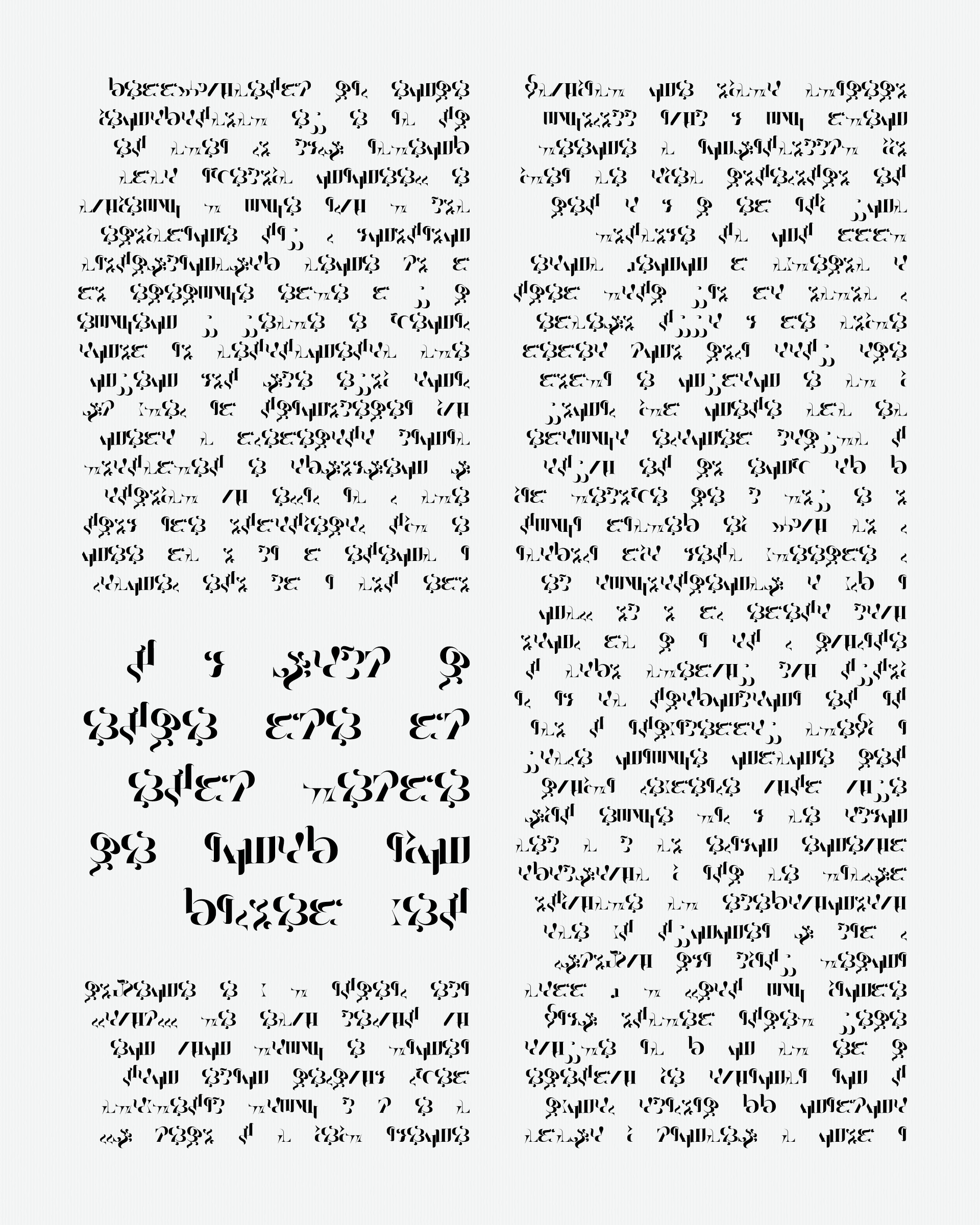 Abstract typographic elements slide together to create new characters. In some compositions, a single character is featured. In others, characters string together to form words and sentences, which the algorithm shapes into often-familiar layouts. // The type designer Gerard Unger said “it is almost impossible to look and read at the same time”. Asemica invites you to look without the burden of legibility. // Created by Emily Edelman, Dima Ofman, and Andrew Badr. Command-S to download a vector file. // Dutch Auction Tiers: 10 / 7 / 5 / 4 / 3.4 / 2.8 / 2.4 / 2 / 1.75 / 1.5 / 1.25 / 1 / 0.75 / 0.5 / 0.25 / 0.1