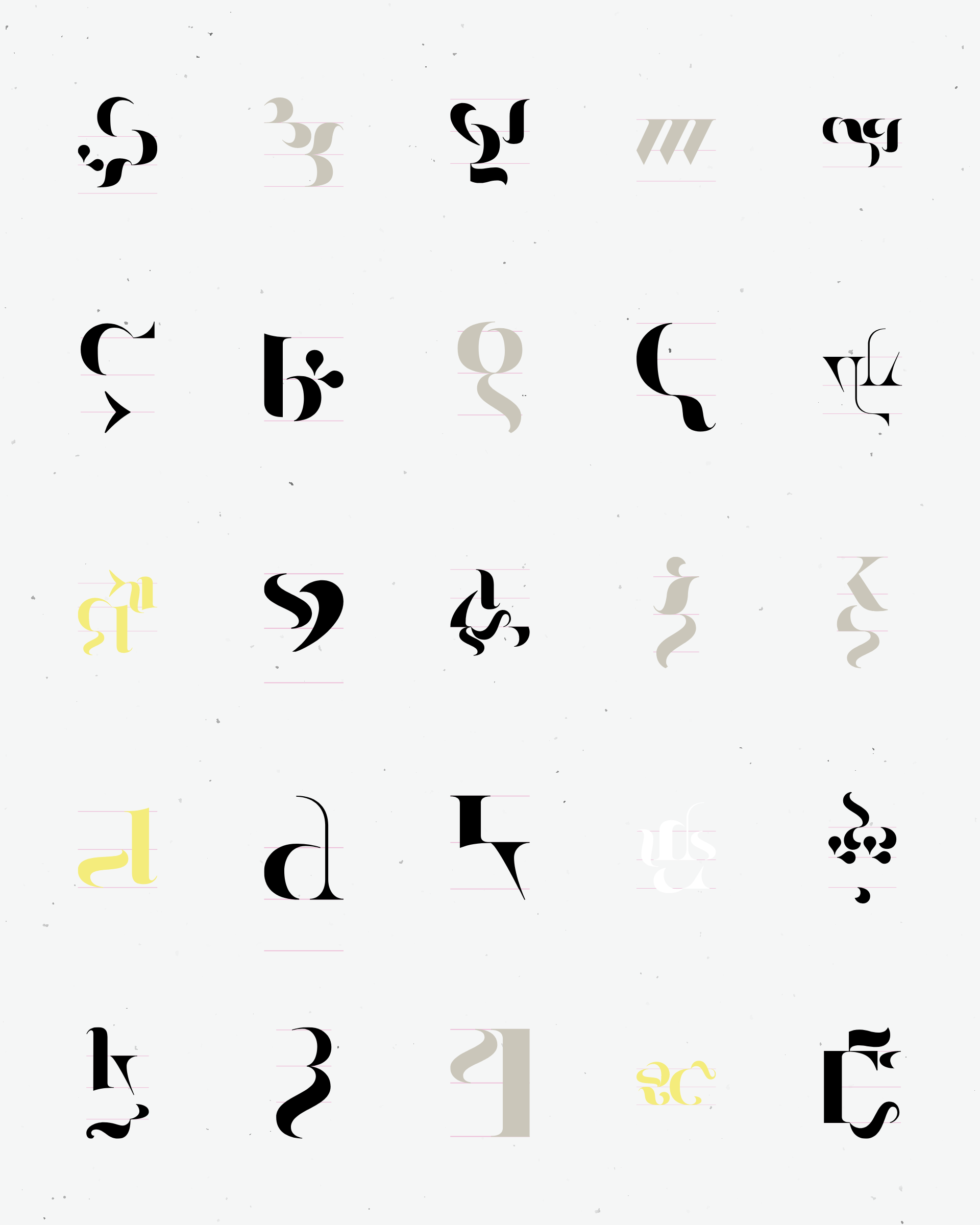 Abstract typographic elements slide together to create new characters. In some compositions, a single character is featured. In others, characters string together to form words and sentences, which the algorithm shapes into often-familiar layouts. // The type designer Gerard Unger said “it is almost impossible to look and read at the same time”. Asemica invites you to look without the burden of legibility. // Created by Emily Edelman, Dima Ofman, and Andrew Badr. Command-S to download a vector file. // Dutch Auction Tiers: 10 / 7 / 5 / 4 / 3.4 / 2.8 / 2.4 / 2 / 1.75 / 1.5 / 1.25 / 1 / 0.75 / 0.5 / 0.25 / 0.1