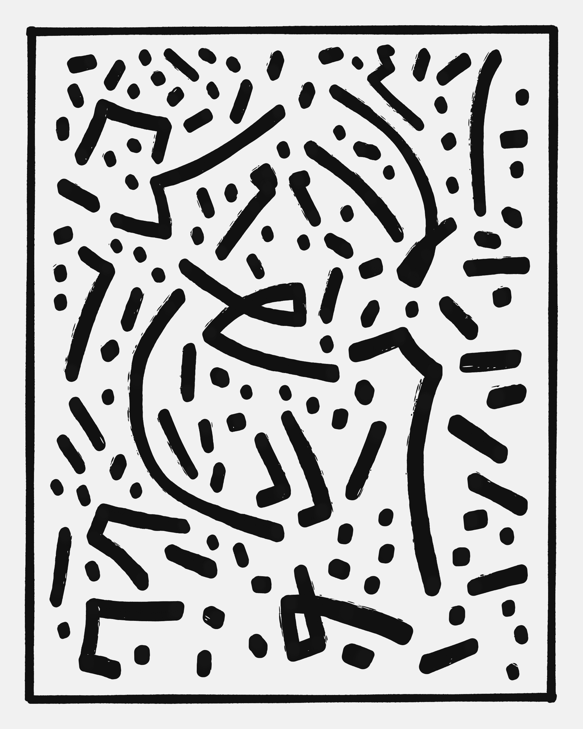 This project explores the age-old computer art phenomenon of inviting the viewer to actively participate in the interpretation of the visual output. The way "Sharp-E" draws the strokes is through a mix of various movements ā irregular curves, straight lines, sudden changes in direction ā in a classic random walk algorithm, while avoiding overlaps with previously drawn strokes. There are no pre-programmed forms per se, but nevertheless it can be common for the viewer to perceive images, symbols, meaning in the generated output.