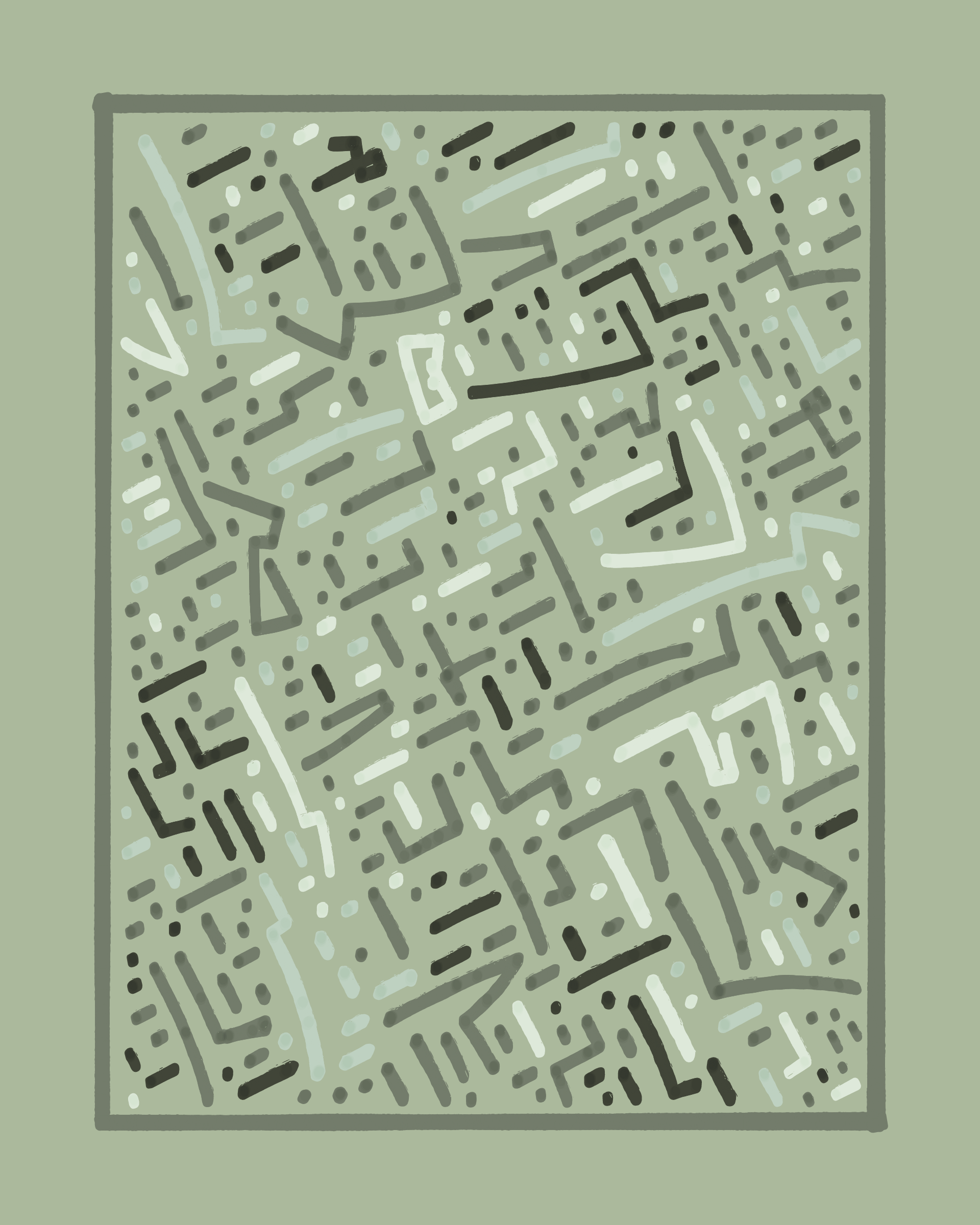 This project explores the age-old computer art phenomenon of inviting the viewer to actively participate in the interpretation of the visual output. The way "Sharp-E" draws the strokes is through a mix of various movements ā irregular curves, straight lines, sudden changes in direction ā in a classic random walk algorithm, while avoiding overlaps with previously drawn strokes. There are no pre-programmed forms per se, but nevertheless it can be common for the viewer to perceive images, symbols, meaning in the generated output.