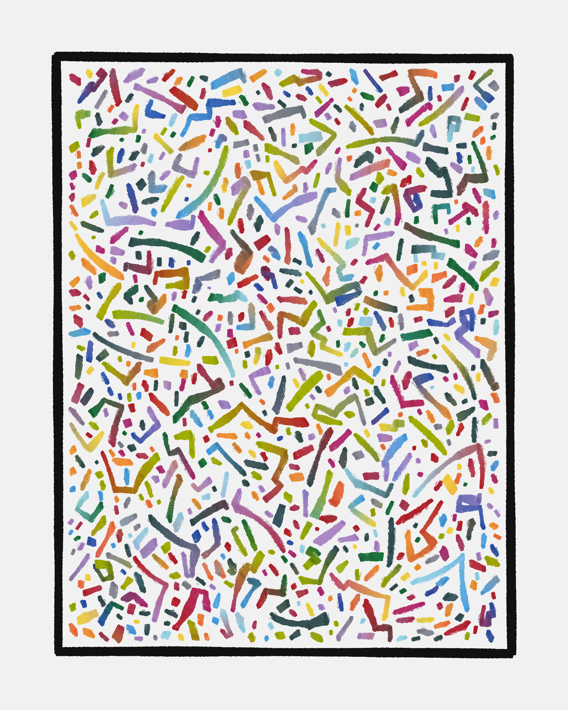 This project explores the age-old computer art phenomenon of inviting the viewer to actively participate in the interpretation of the visual output. The way "Sharp-E" draws the strokes is through a mix of various movements ā irregular curves, straight lines, sudden changes in direction ā in a classic random walk algorithm, while avoiding overlaps with previously drawn strokes. There are no pre-programmed forms per se, but nevertheless it can be common for the viewer to perceive images, symbols, meaning in the generated output.
