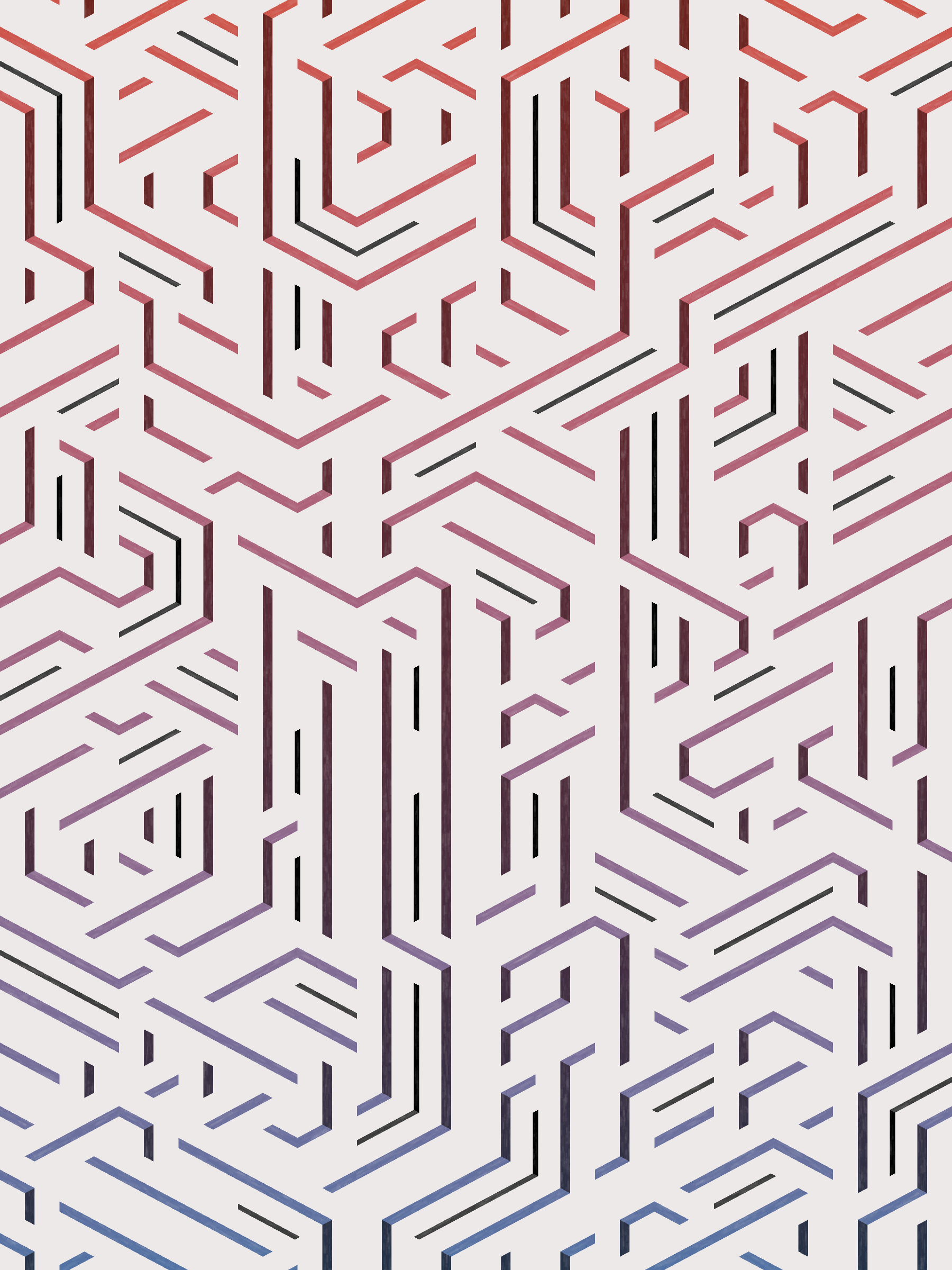 Lines are bent and shaded. There are no wrong turns. [Interaction in live view: press 1-7 or left/right arrow keys to see the stages of sketch construction: 1-grid, 2-divide, 3-tile, 4-bend, 5-shade, 6-color, 7-texture]