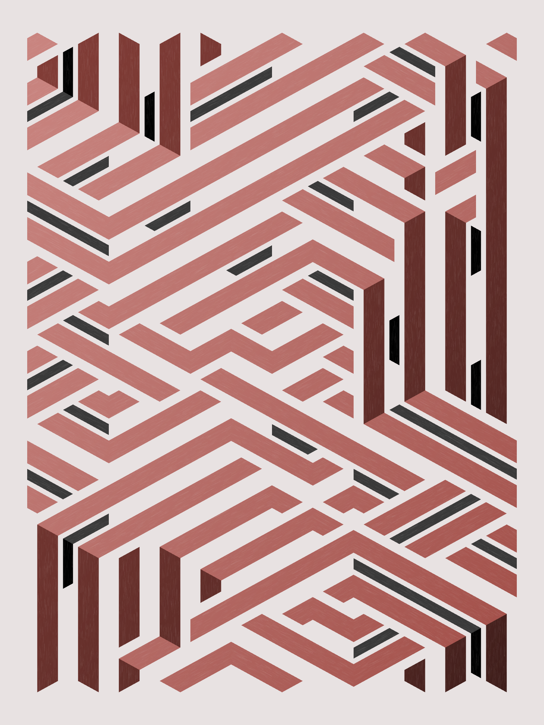 Lines are bent and shaded. There are no wrong turns. [Interaction in live view: press 1-7 or left/right arrow keys to see the stages of sketch construction: 1-grid, 2-divide, 3-tile, 4-bend, 5-shade, 6-color, 7-texture]