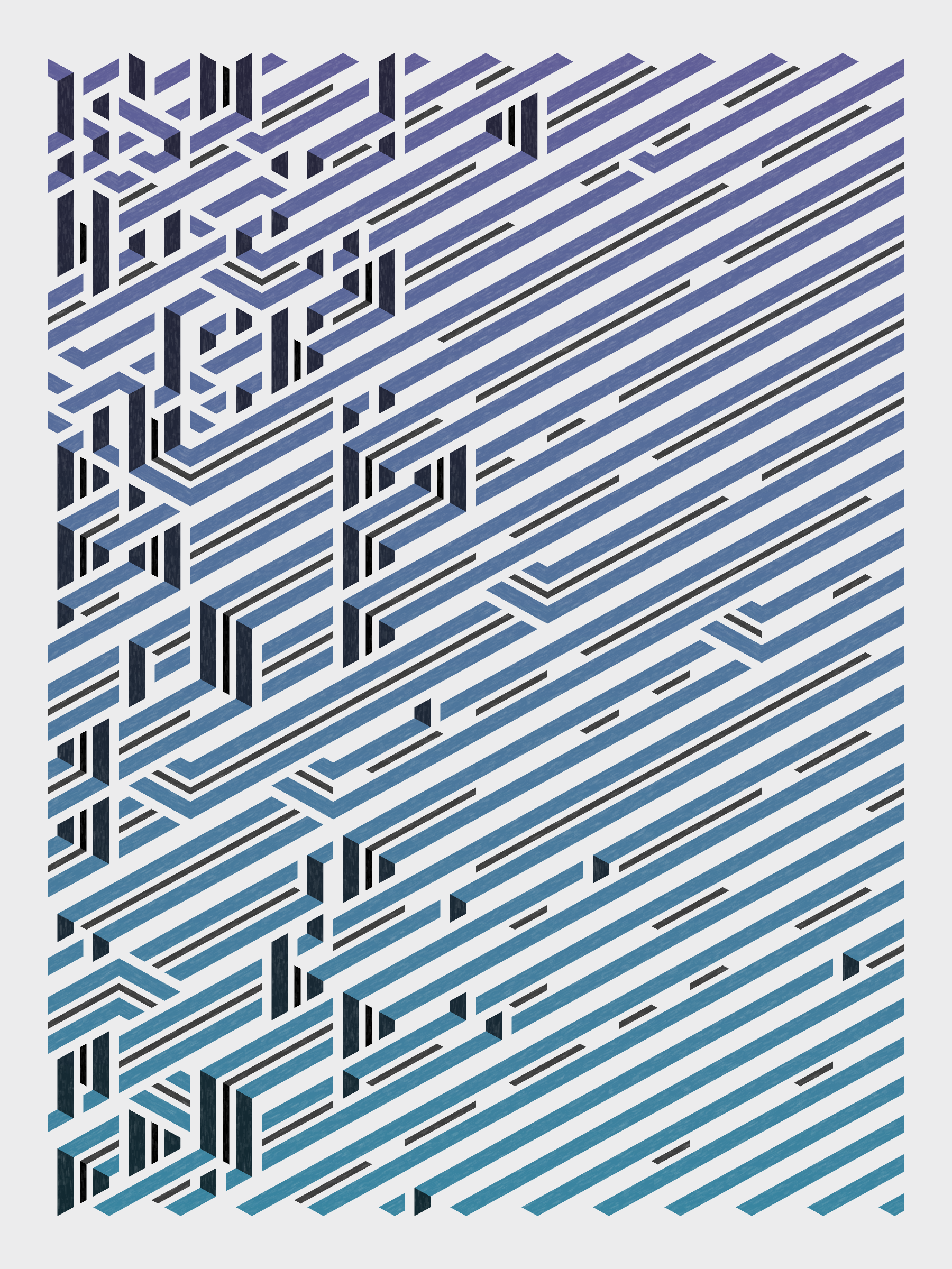 Lines are bent and shaded. There are no wrong turns. [Interaction in live view: press 1-7 or left/right arrow keys to see the stages of sketch construction: 1-grid, 2-divide, 3-tile, 4-bend, 5-shade, 6-color, 7-texture]