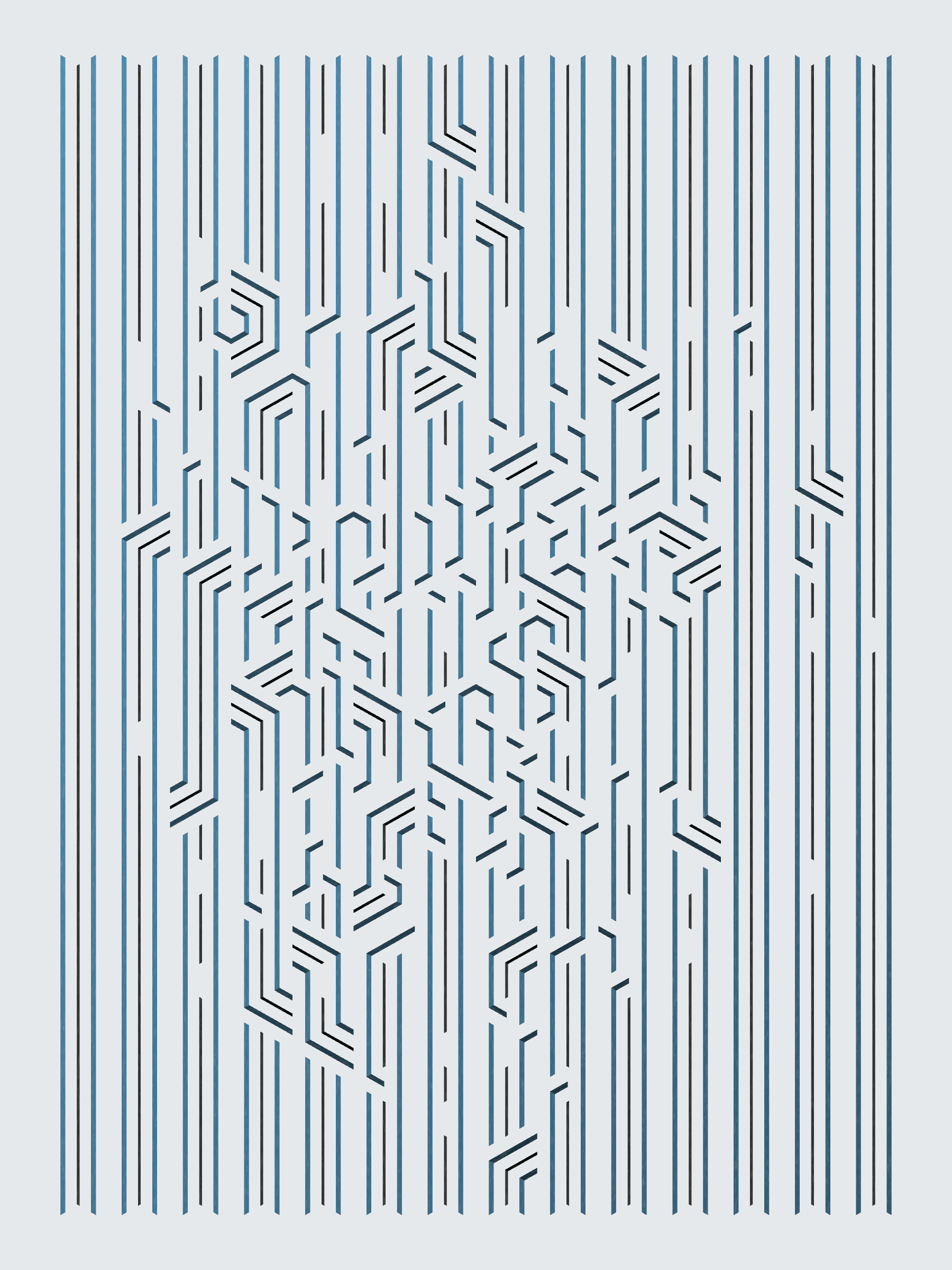 Lines are bent and shaded. There are no wrong turns. [Interaction in live view: press 1-7 or left/right arrow keys to see the stages of sketch construction: 1-grid, 2-divide, 3-tile, 4-bend, 5-shade, 6-color, 7-texture]