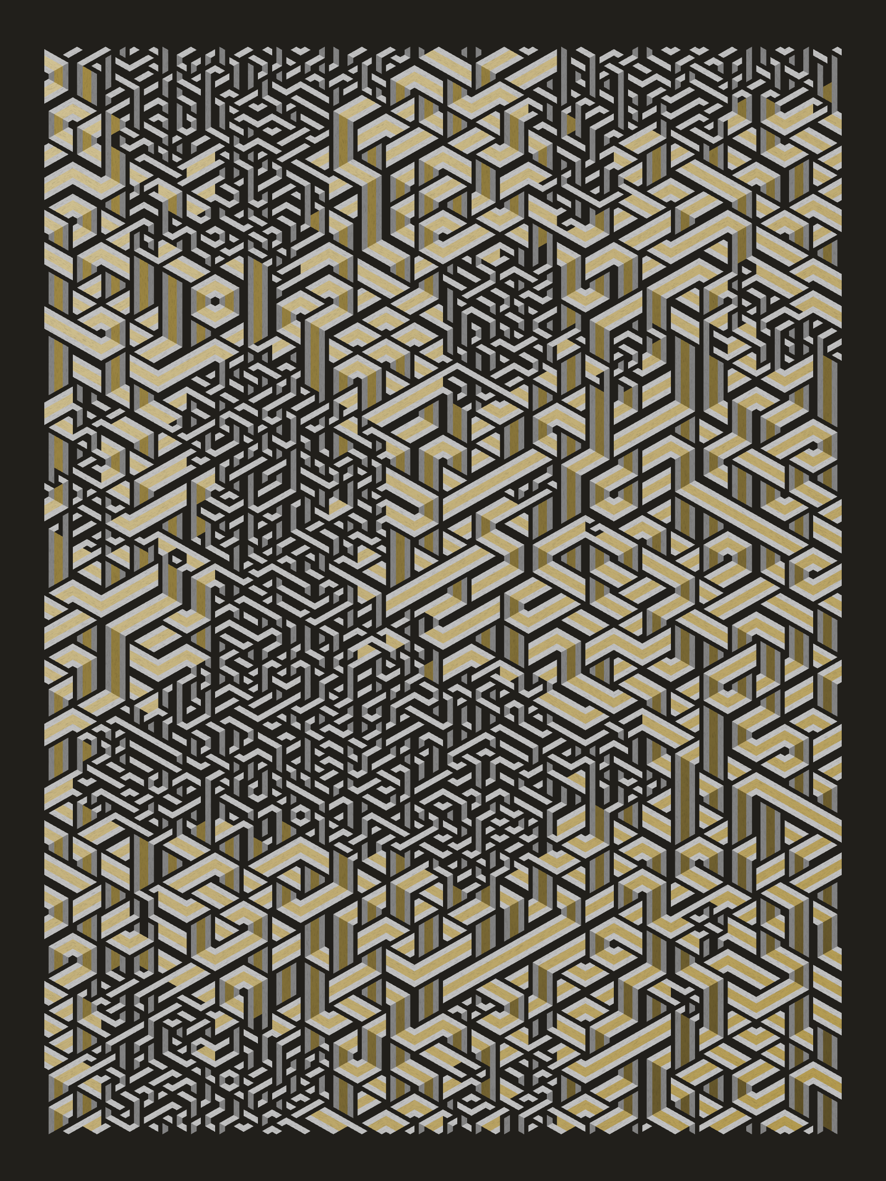 Lines are bent and shaded. There are no wrong turns. [Interaction in live view: press 1-7 or left/right arrow keys to see the stages of sketch construction: 1-grid, 2-divide, 3-tile, 4-bend, 5-shade, 6-color, 7-texture]
