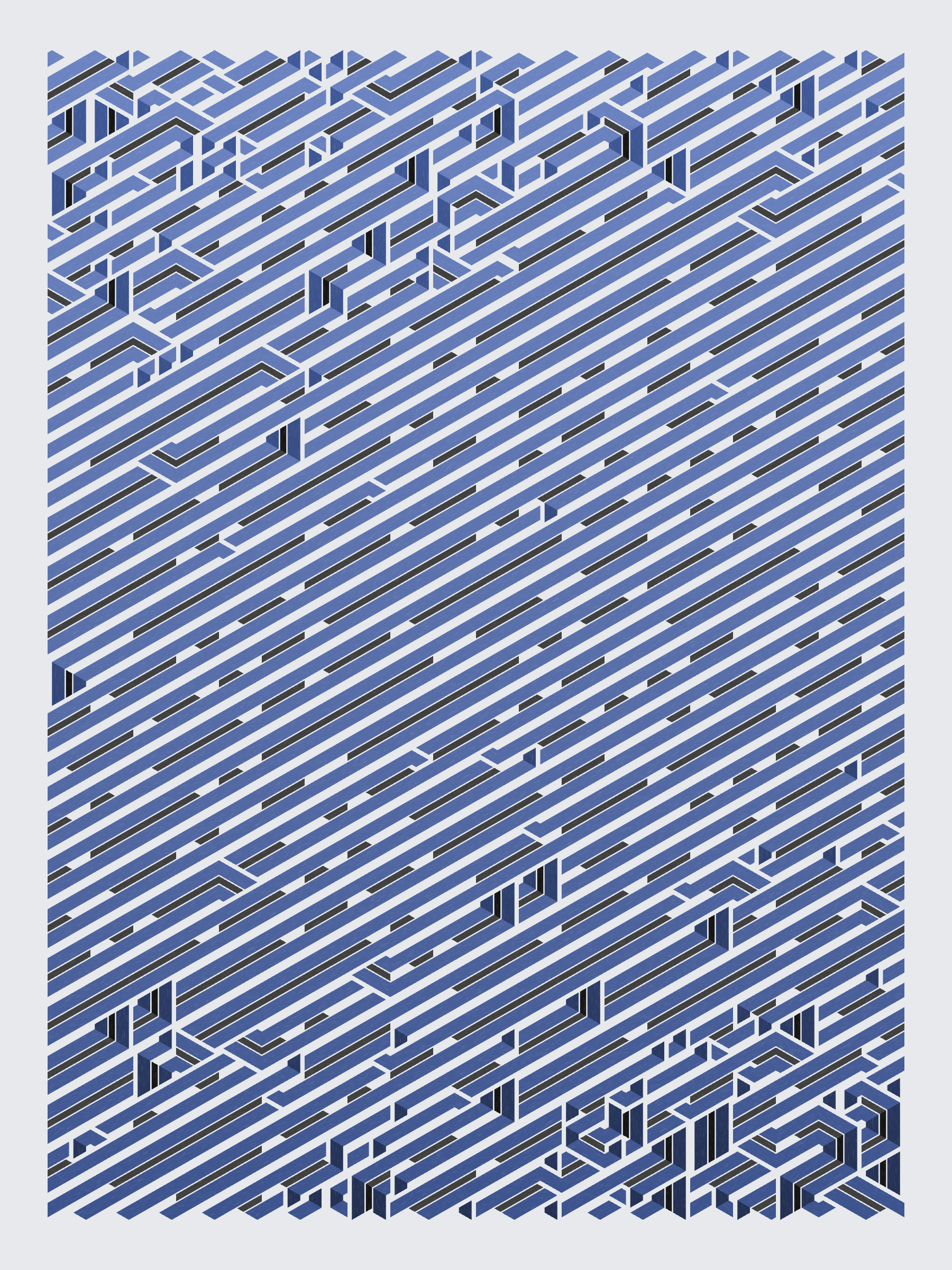 Lines are bent and shaded. There are no wrong turns. [Interaction in live view: press 1-7 or left/right arrow keys to see the stages of sketch construction: 1-grid, 2-divide, 3-tile, 4-bend, 5-shade, 6-color, 7-texture]