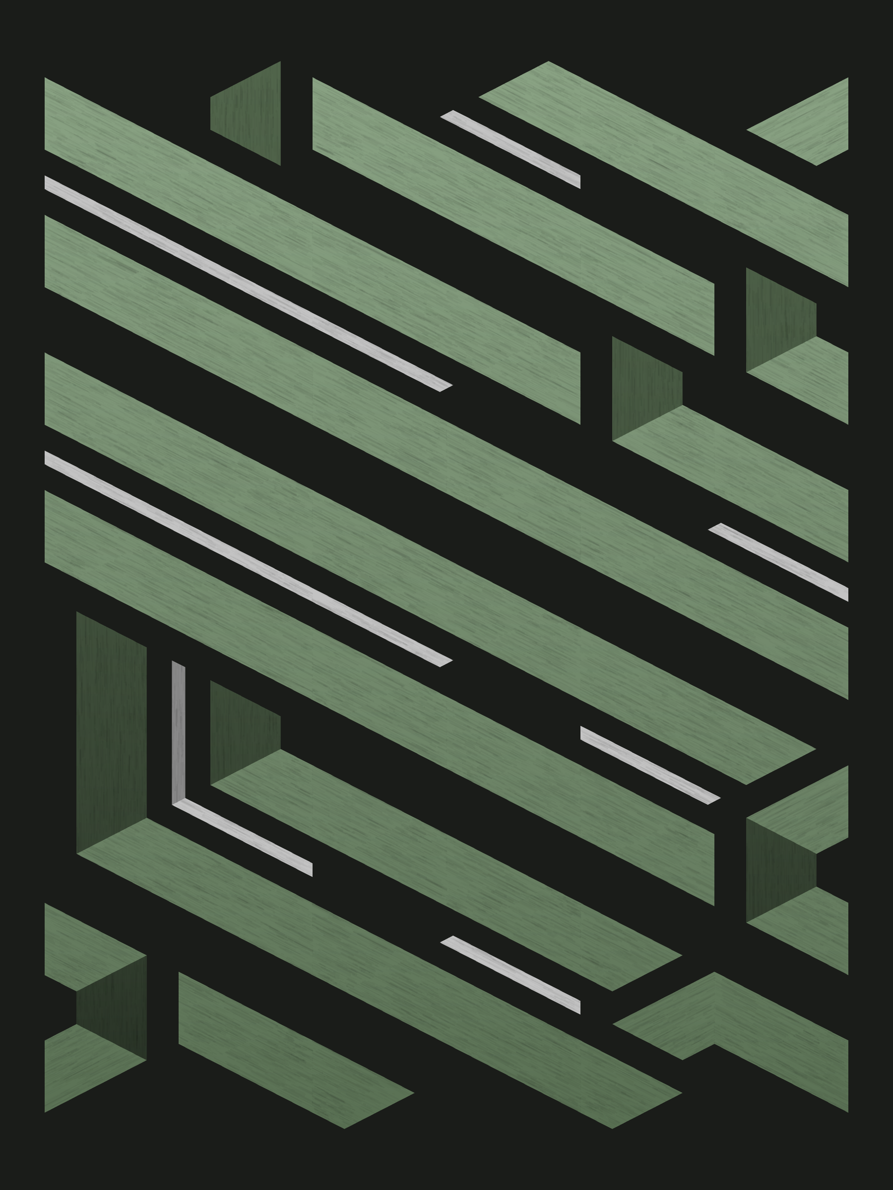 Lines are bent and shaded. There are no wrong turns. [Interaction in live view: press 1-7 or left/right arrow keys to see the stages of sketch construction: 1-grid, 2-divide, 3-tile, 4-bend, 5-shade, 6-color, 7-texture]
