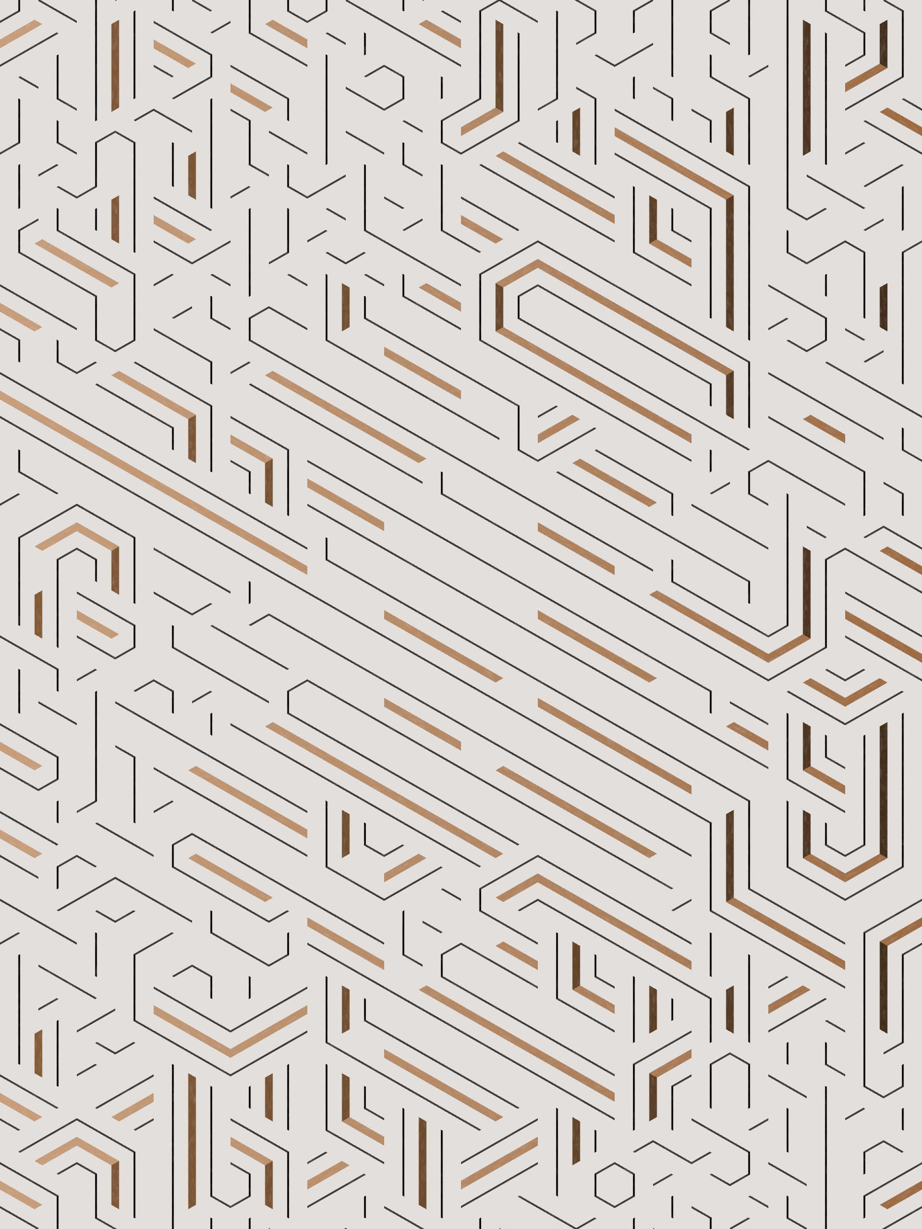 Lines are bent and shaded. There are no wrong turns. [Interaction in live view: press 1-7 or left/right arrow keys to see the stages of sketch construction: 1-grid, 2-divide, 3-tile, 4-bend, 5-shade, 6-color, 7-texture]