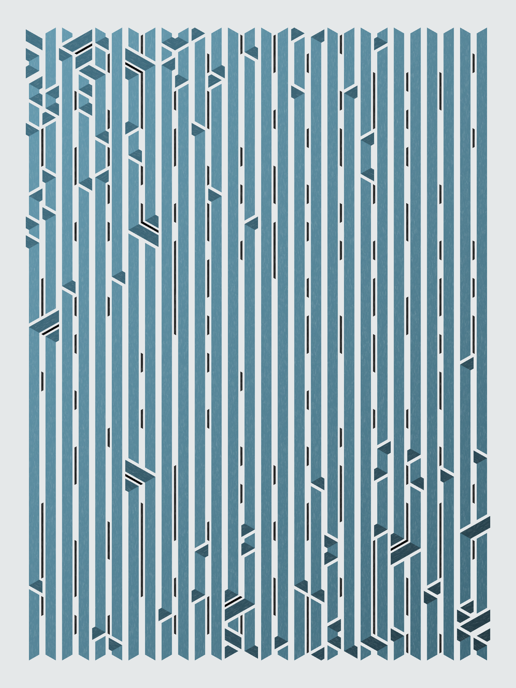 Lines are bent and shaded. There are no wrong turns. [Interaction in live view: press 1-7 or left/right arrow keys to see the stages of sketch construction: 1-grid, 2-divide, 3-tile, 4-bend, 5-shade, 6-color, 7-texture]