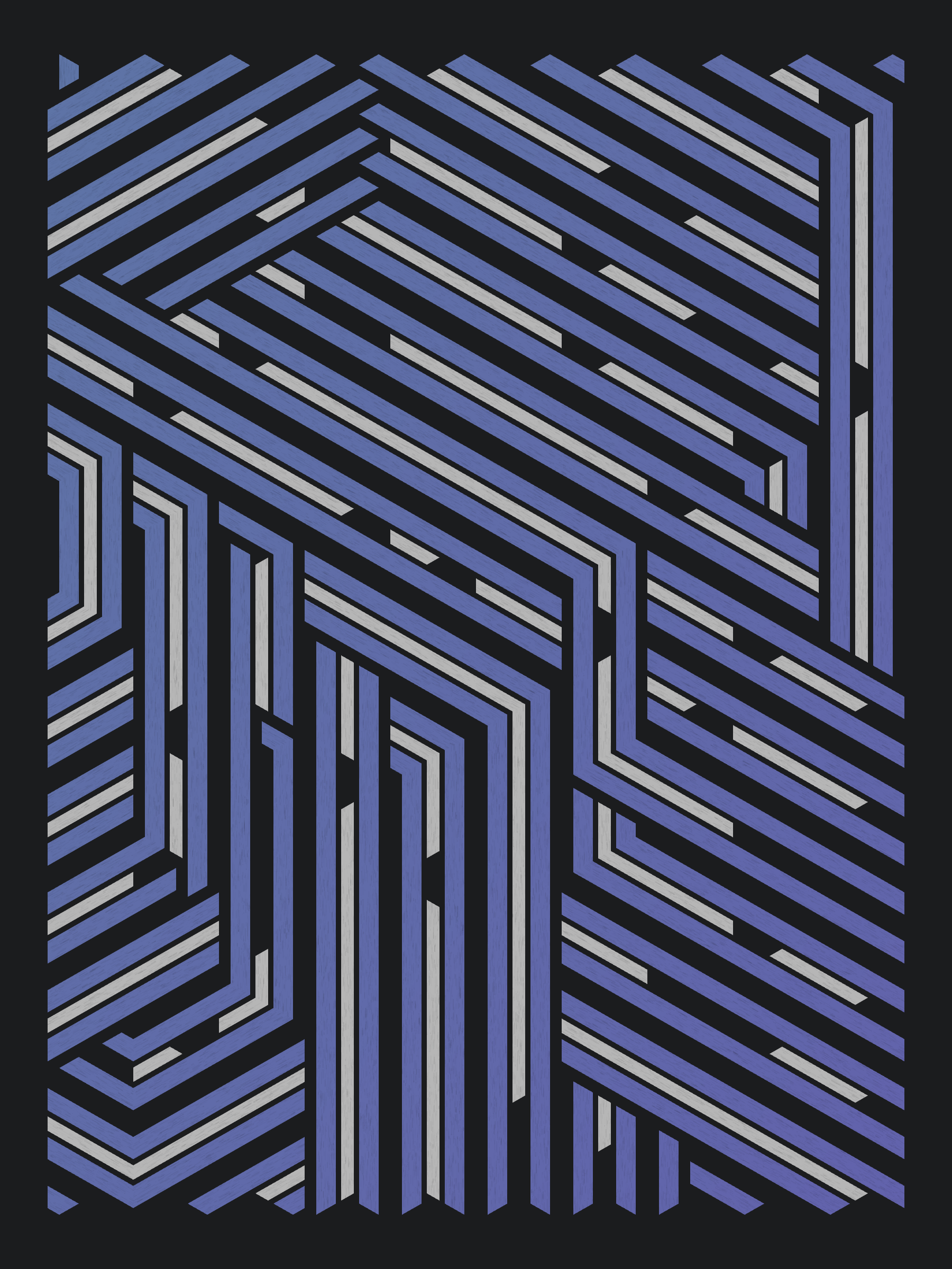 Lines are bent and shaded. There are no wrong turns. [Interaction in live view: press 1-7 or left/right arrow keys to see the stages of sketch construction: 1-grid, 2-divide, 3-tile, 4-bend, 5-shade, 6-color, 7-texture]