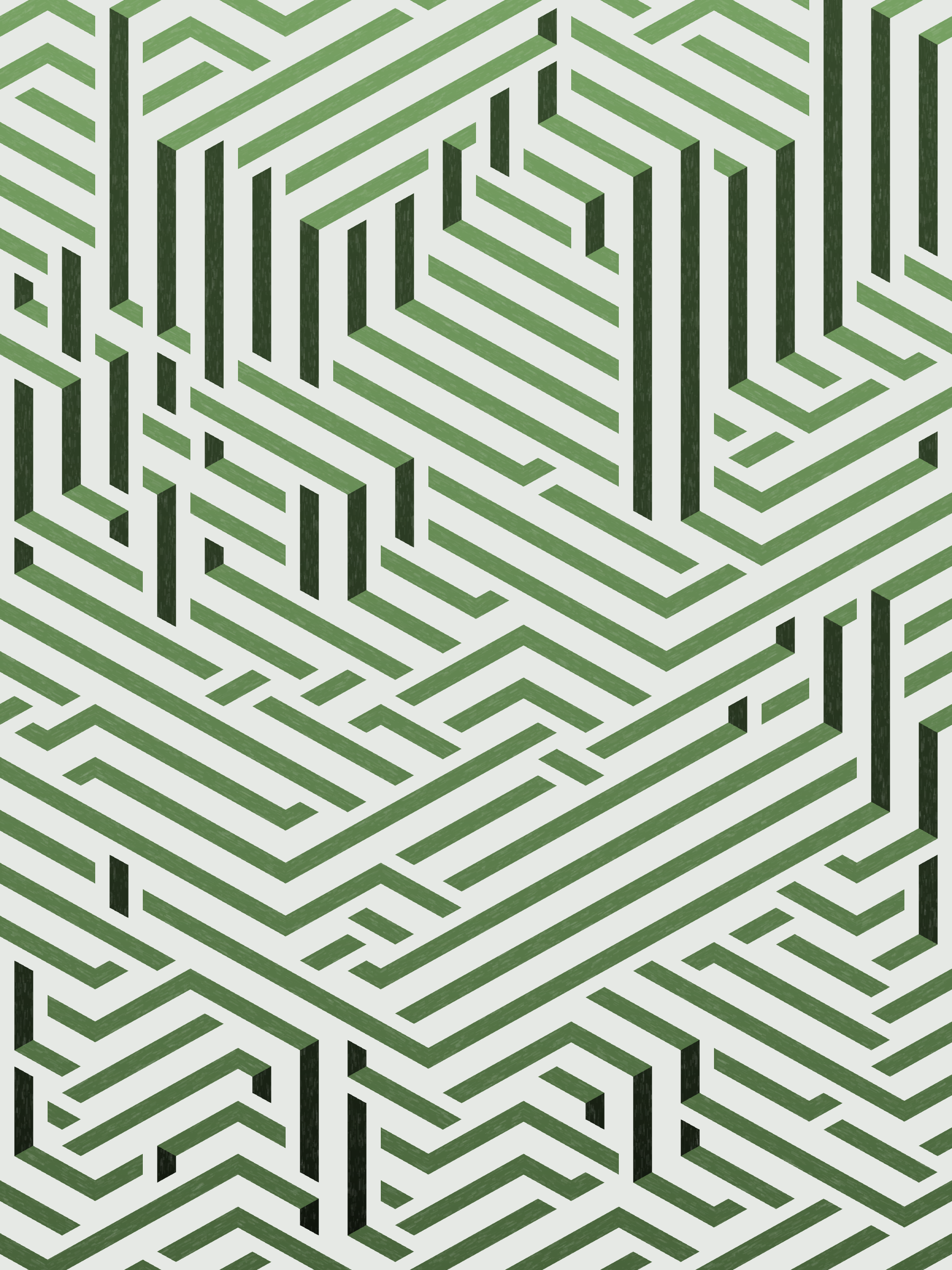 Lines are bent and shaded. There are no wrong turns. [Interaction in live view: press 1-7 or left/right arrow keys to see the stages of sketch construction: 1-grid, 2-divide, 3-tile, 4-bend, 5-shade, 6-color, 7-texture]