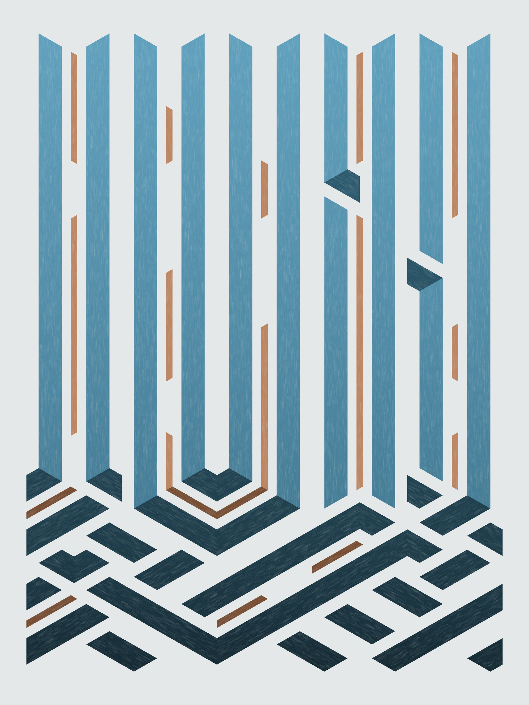 Lines are bent and shaded. There are no wrong turns. [Interaction in live view: press 1-7 or left/right arrow keys to see the stages of sketch construction: 1-grid, 2-divide, 3-tile, 4-bend, 5-shade, 6-color, 7-texture]