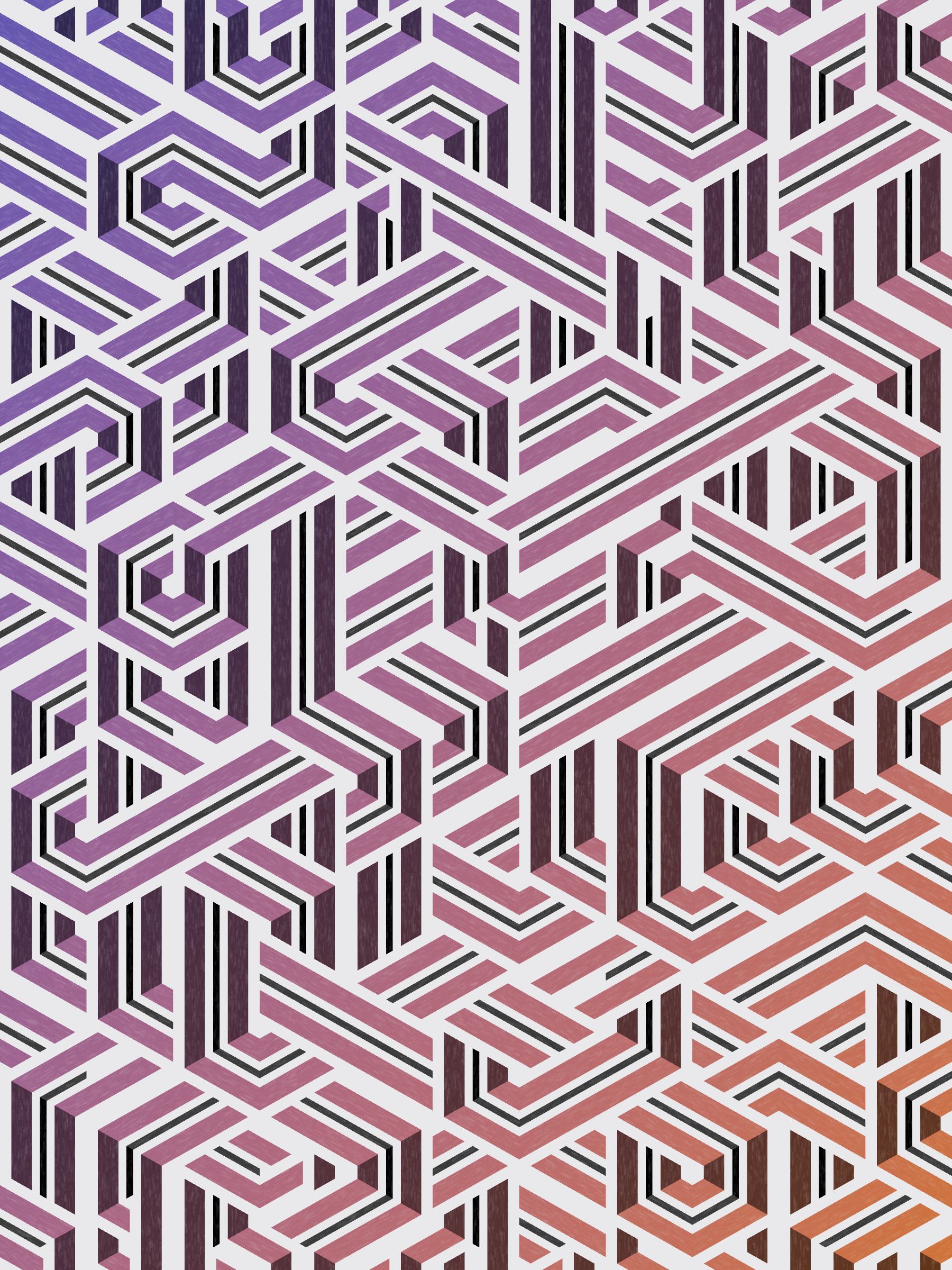 Lines are bent and shaded. There are no wrong turns. [Interaction in live view: press 1-7 or left/right arrow keys to see the stages of sketch construction: 1-grid, 2-divide, 3-tile, 4-bend, 5-shade, 6-color, 7-texture]