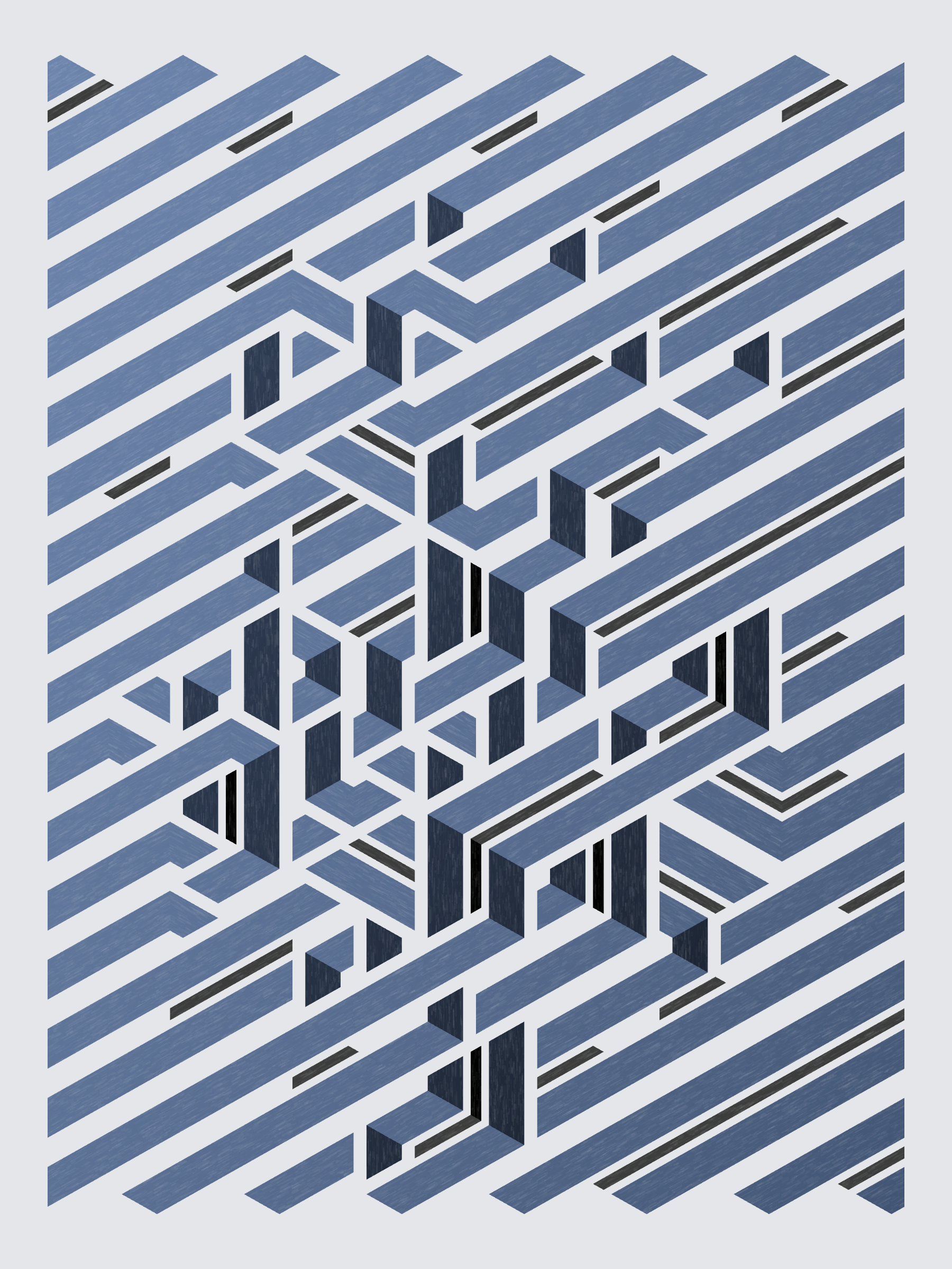 Lines are bent and shaded. There are no wrong turns. [Interaction in live view: press 1-7 or left/right arrow keys to see the stages of sketch construction: 1-grid, 2-divide, 3-tile, 4-bend, 5-shade, 6-color, 7-texture]