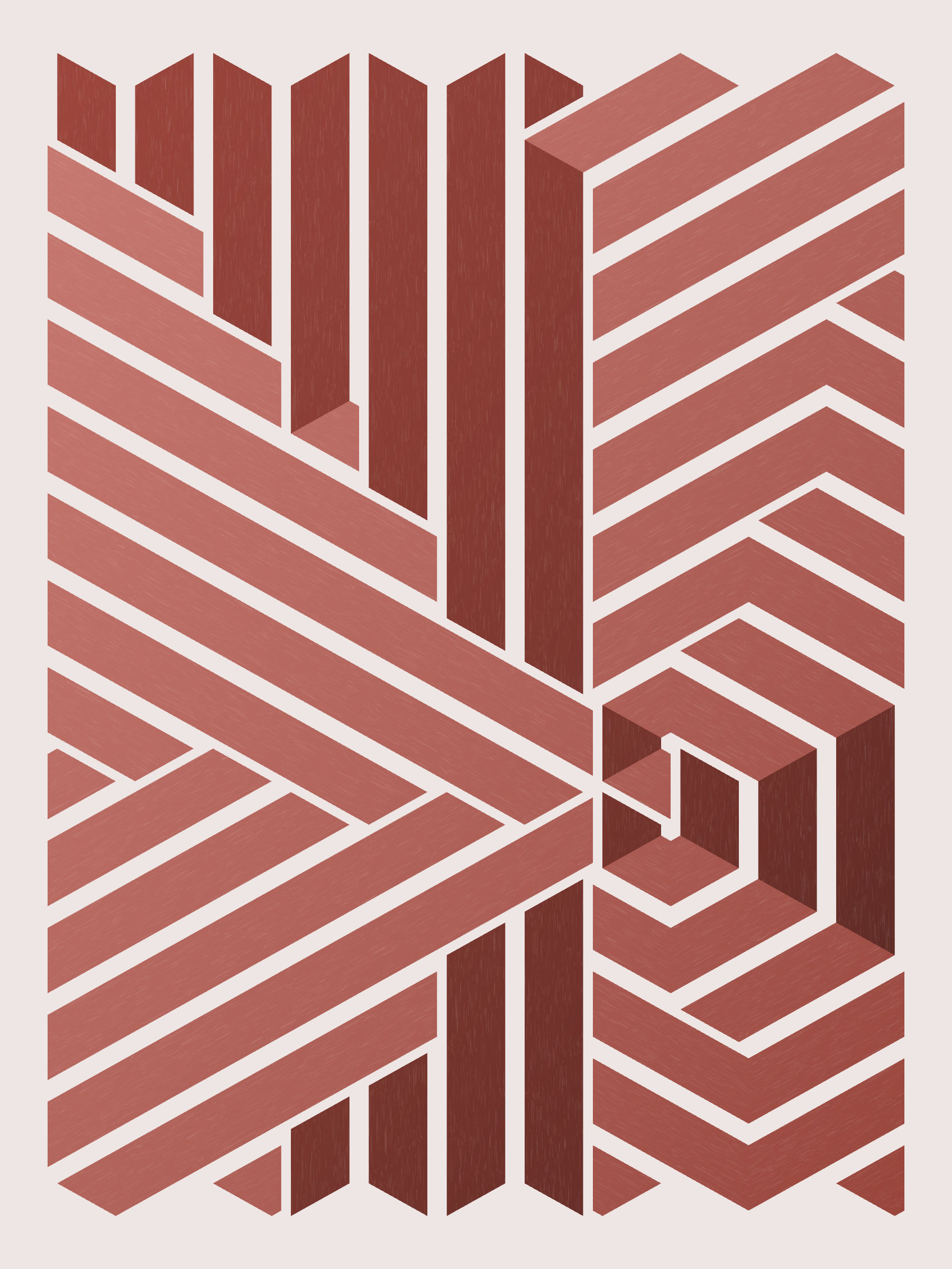 Lines are bent and shaded. There are no wrong turns. [Interaction in live view: press 1-7 or left/right arrow keys to see the stages of sketch construction: 1-grid, 2-divide, 3-tile, 4-bend, 5-shade, 6-color, 7-texture]