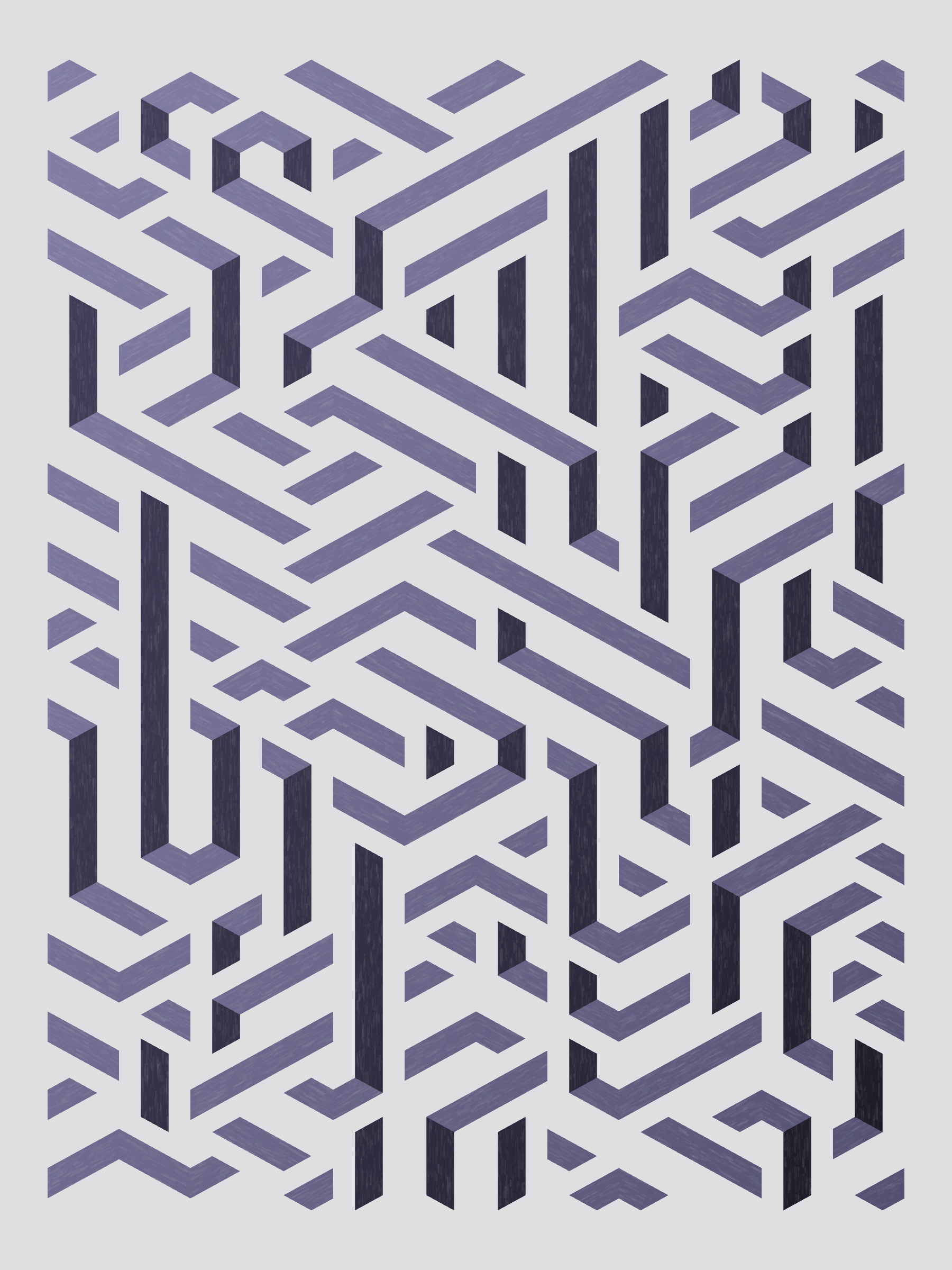 Lines are bent and shaded. There are no wrong turns. [Interaction in live view: press 1-7 or left/right arrow keys to see the stages of sketch construction: 1-grid, 2-divide, 3-tile, 4-bend, 5-shade, 6-color, 7-texture]