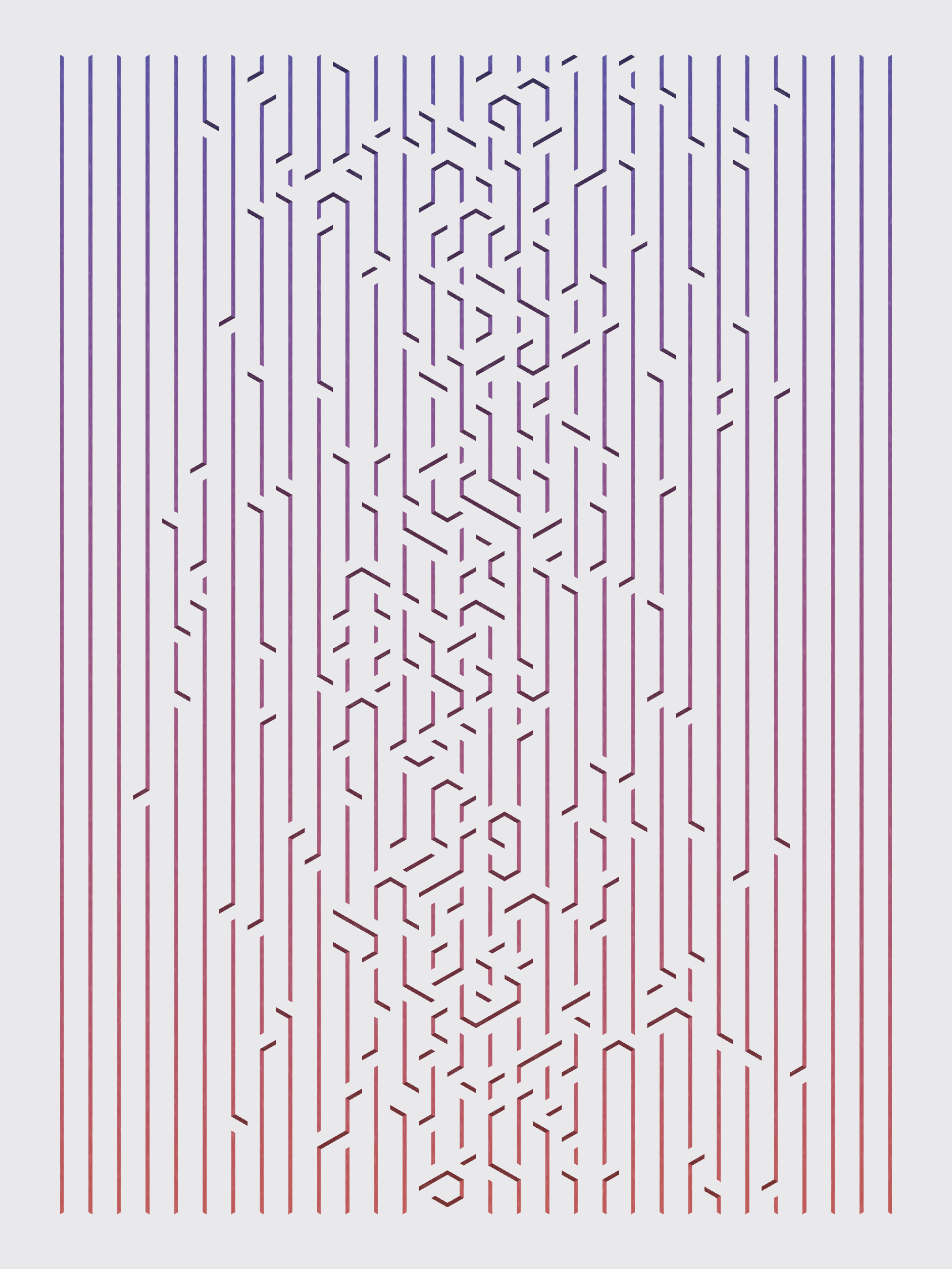 Lines are bent and shaded. There are no wrong turns. [Interaction in live view: press 1-7 or left/right arrow keys to see the stages of sketch construction: 1-grid, 2-divide, 3-tile, 4-bend, 5-shade, 6-color, 7-texture]