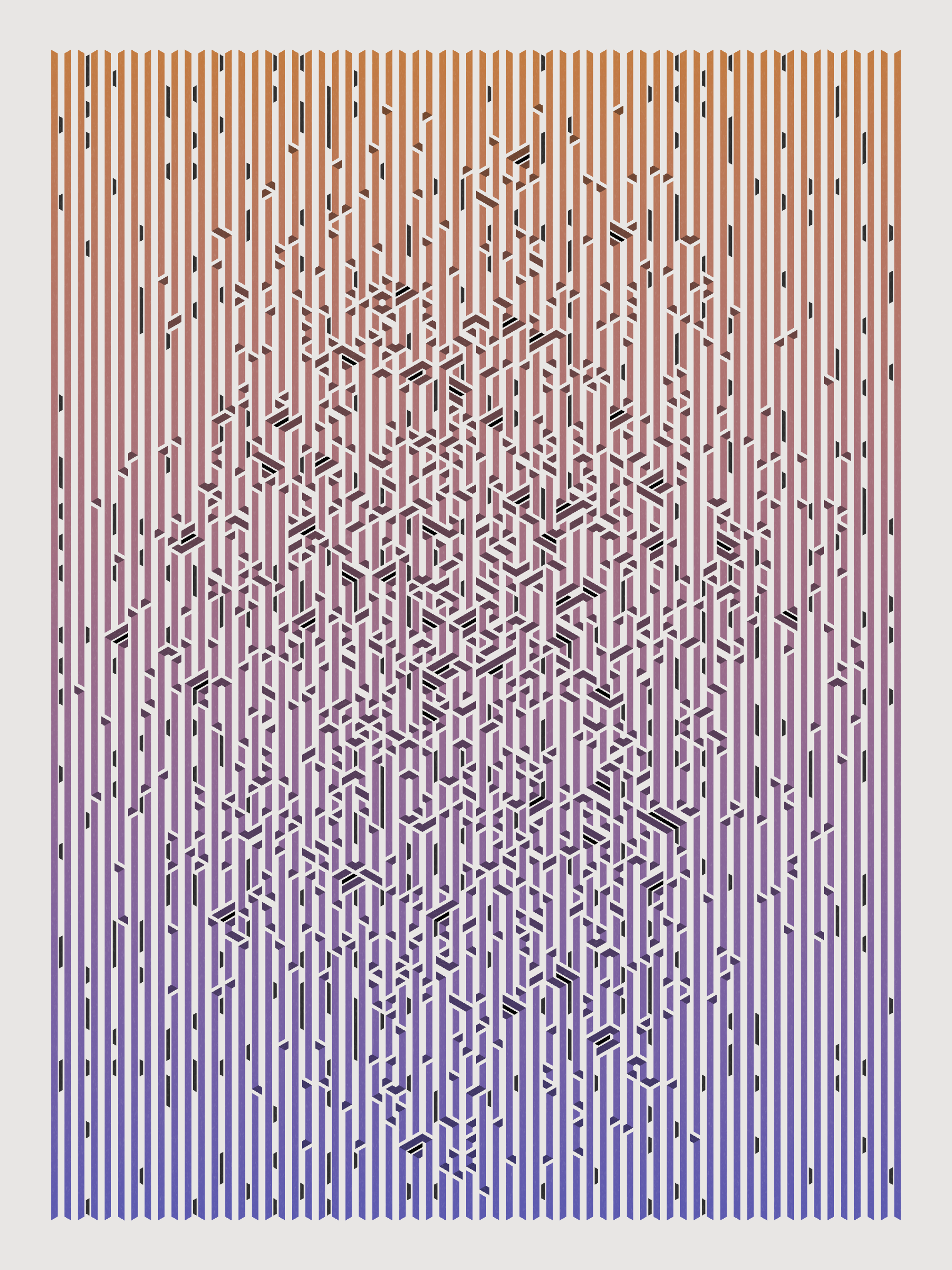 Lines are bent and shaded. There are no wrong turns. [Interaction in live view: press 1-7 or left/right arrow keys to see the stages of sketch construction: 1-grid, 2-divide, 3-tile, 4-bend, 5-shade, 6-color, 7-texture]