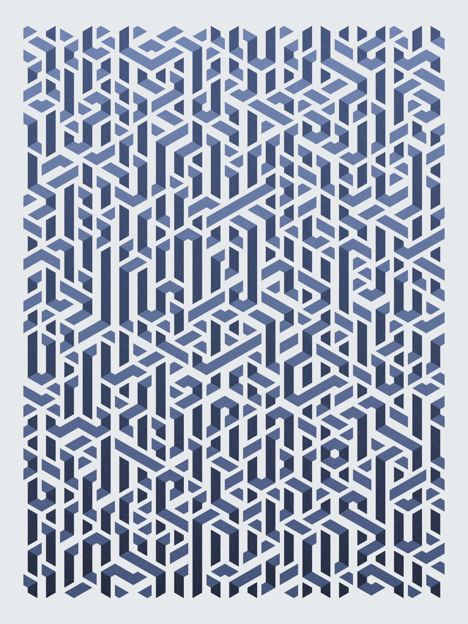 Lines are bent and shaded. There are no wrong turns. [Interaction in live view: press 1-7 or left/right arrow keys to see the stages of sketch construction: 1-grid, 2-divide, 3-tile, 4-bend, 5-shade, 6-color, 7-texture]