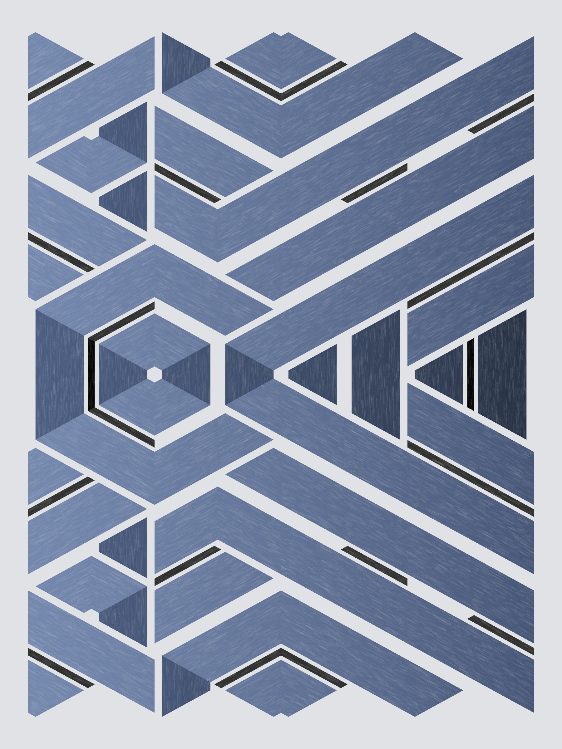 Lines are bent and shaded. There are no wrong turns. [Interaction in live view: press 1-7 or left/right arrow keys to see the stages of sketch construction: 1-grid, 2-divide, 3-tile, 4-bend, 5-shade, 6-color, 7-texture]