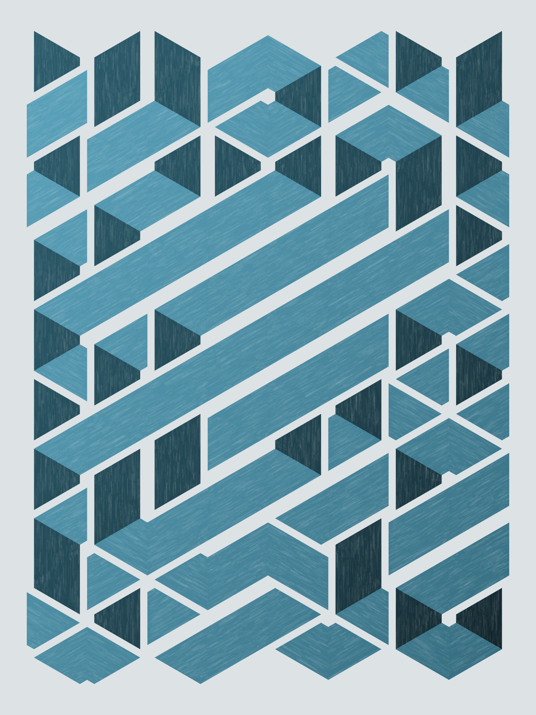 Lines are bent and shaded. There are no wrong turns. [Interaction in live view: press 1-7 or left/right arrow keys to see the stages of sketch construction: 1-grid, 2-divide, 3-tile, 4-bend, 5-shade, 6-color, 7-texture]