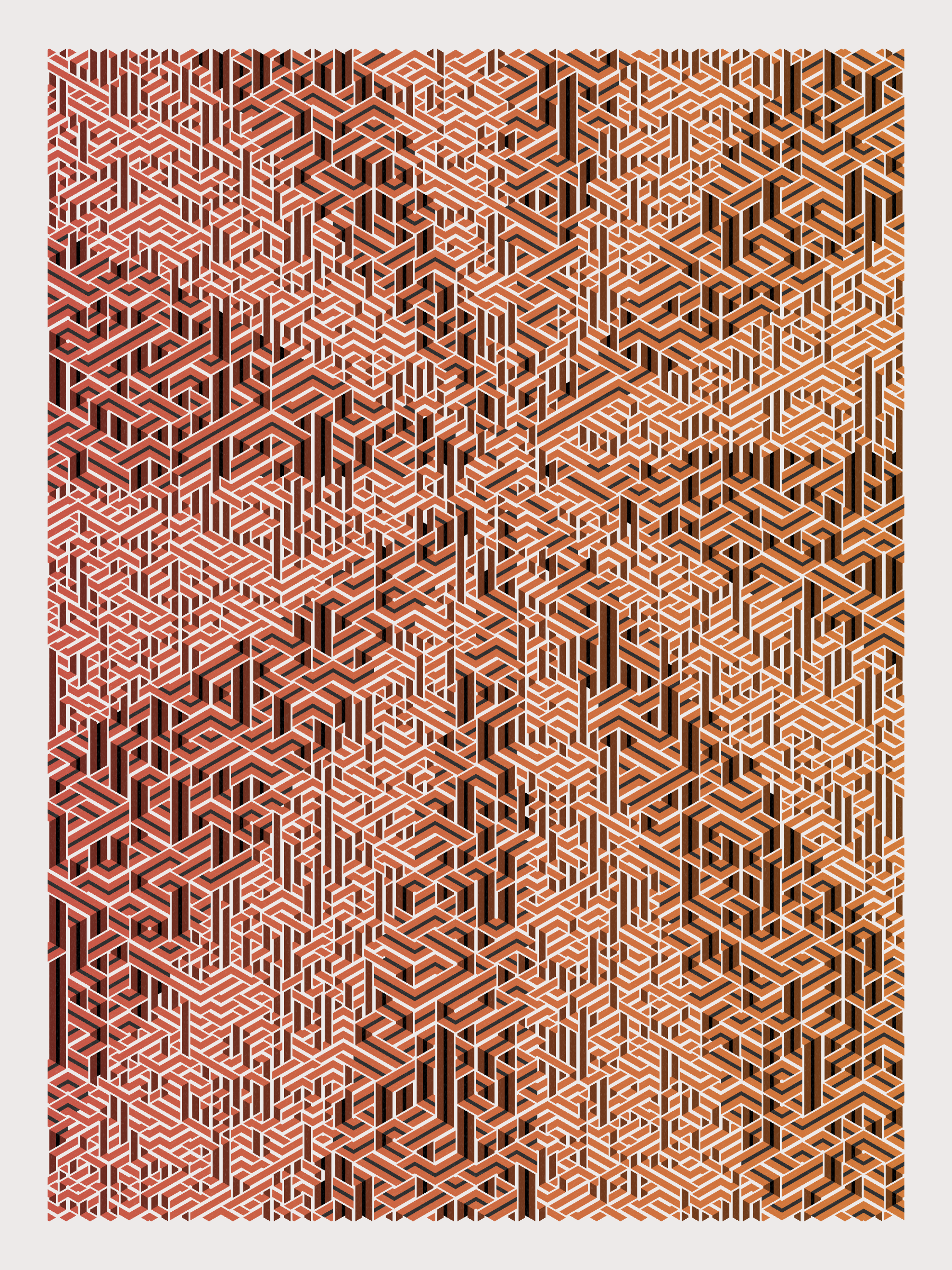 Lines are bent and shaded. There are no wrong turns. [Interaction in live view: press 1-7 or left/right arrow keys to see the stages of sketch construction: 1-grid, 2-divide, 3-tile, 4-bend, 5-shade, 6-color, 7-texture]