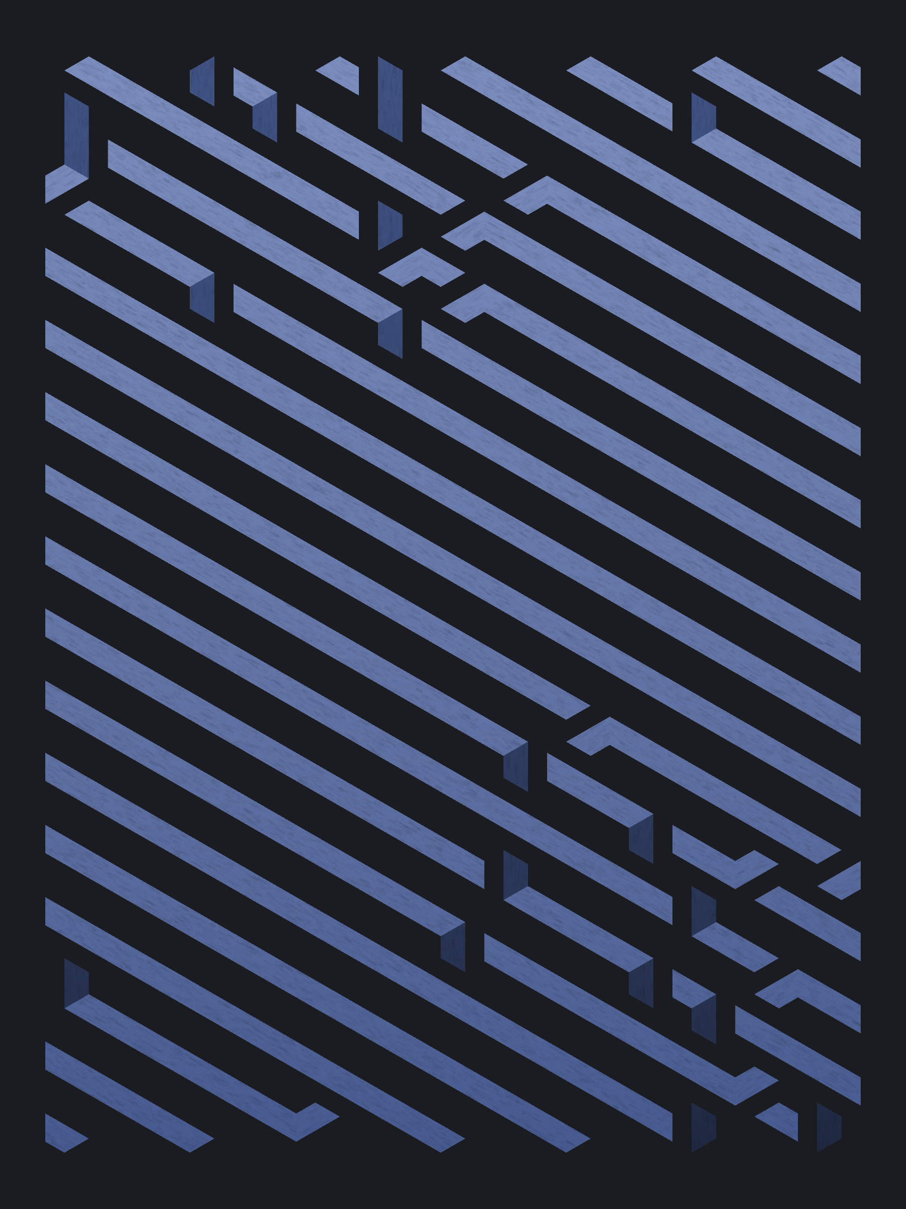 Lines are bent and shaded. There are no wrong turns. [Interaction in live view: press 1-7 or left/right arrow keys to see the stages of sketch construction: 1-grid, 2-divide, 3-tile, 4-bend, 5-shade, 6-color, 7-texture]
