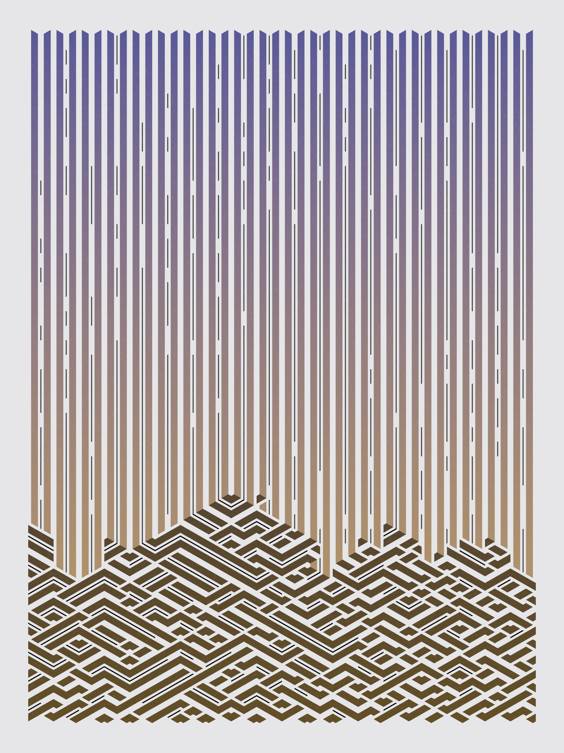 Lines are bent and shaded. There are no wrong turns. [Interaction in live view: press 1-7 or left/right arrow keys to see the stages of sketch construction: 1-grid, 2-divide, 3-tile, 4-bend, 5-shade, 6-color, 7-texture]