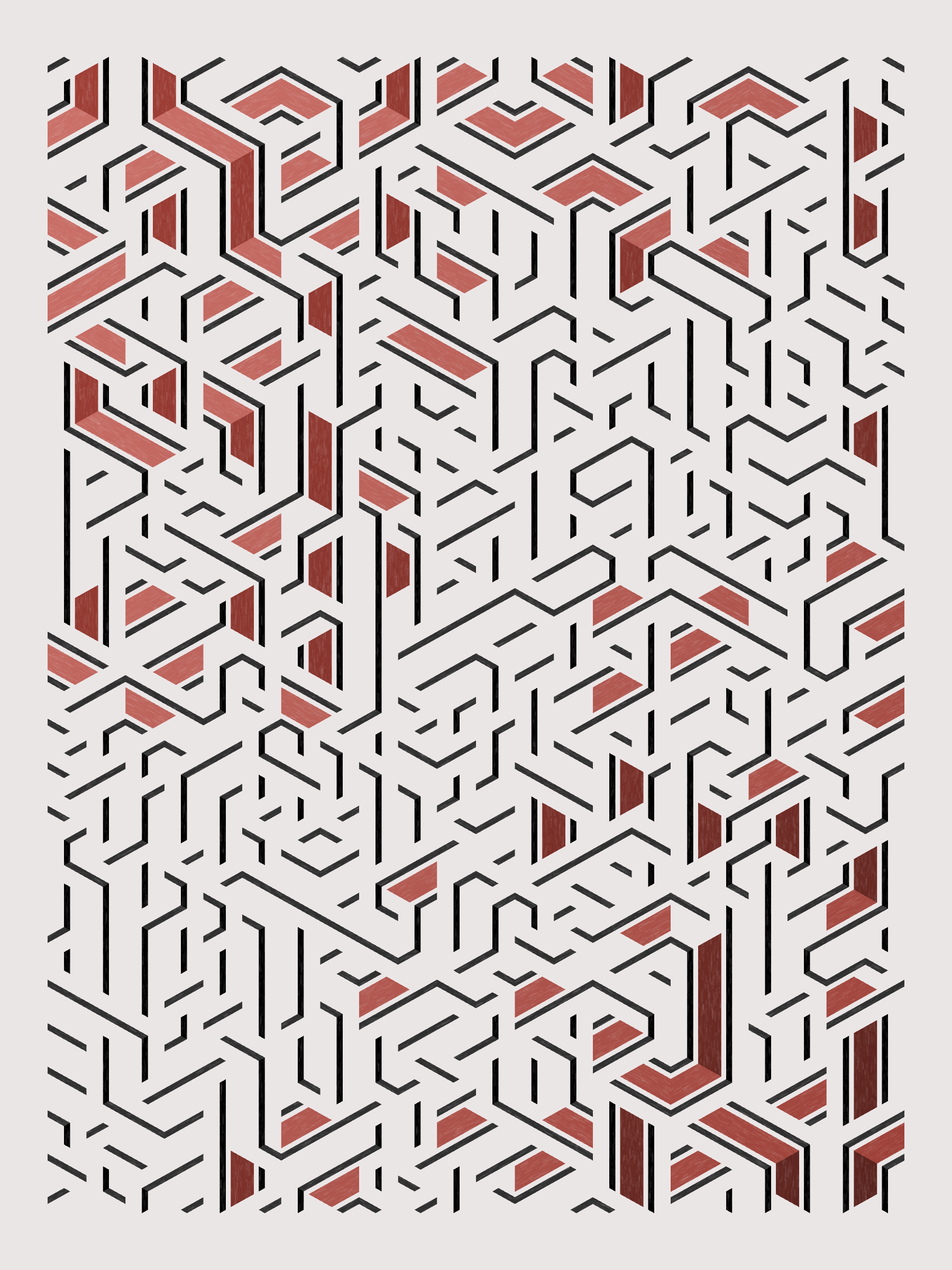 Lines are bent and shaded. There are no wrong turns. [Interaction in live view: press 1-7 or left/right arrow keys to see the stages of sketch construction: 1-grid, 2-divide, 3-tile, 4-bend, 5-shade, 6-color, 7-texture]
