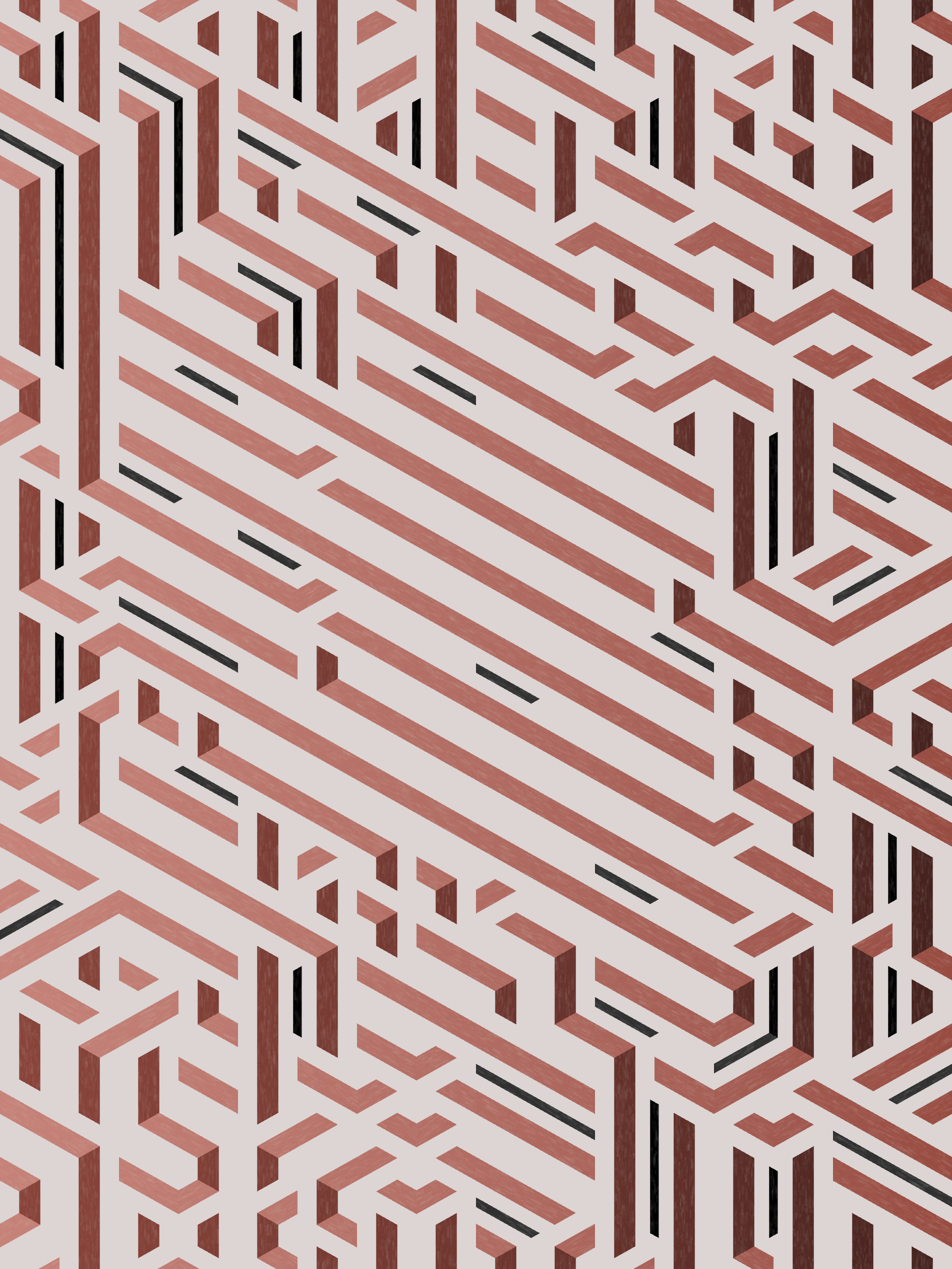 Lines are bent and shaded. There are no wrong turns. [Interaction in live view: press 1-7 or left/right arrow keys to see the stages of sketch construction: 1-grid, 2-divide, 3-tile, 4-bend, 5-shade, 6-color, 7-texture]