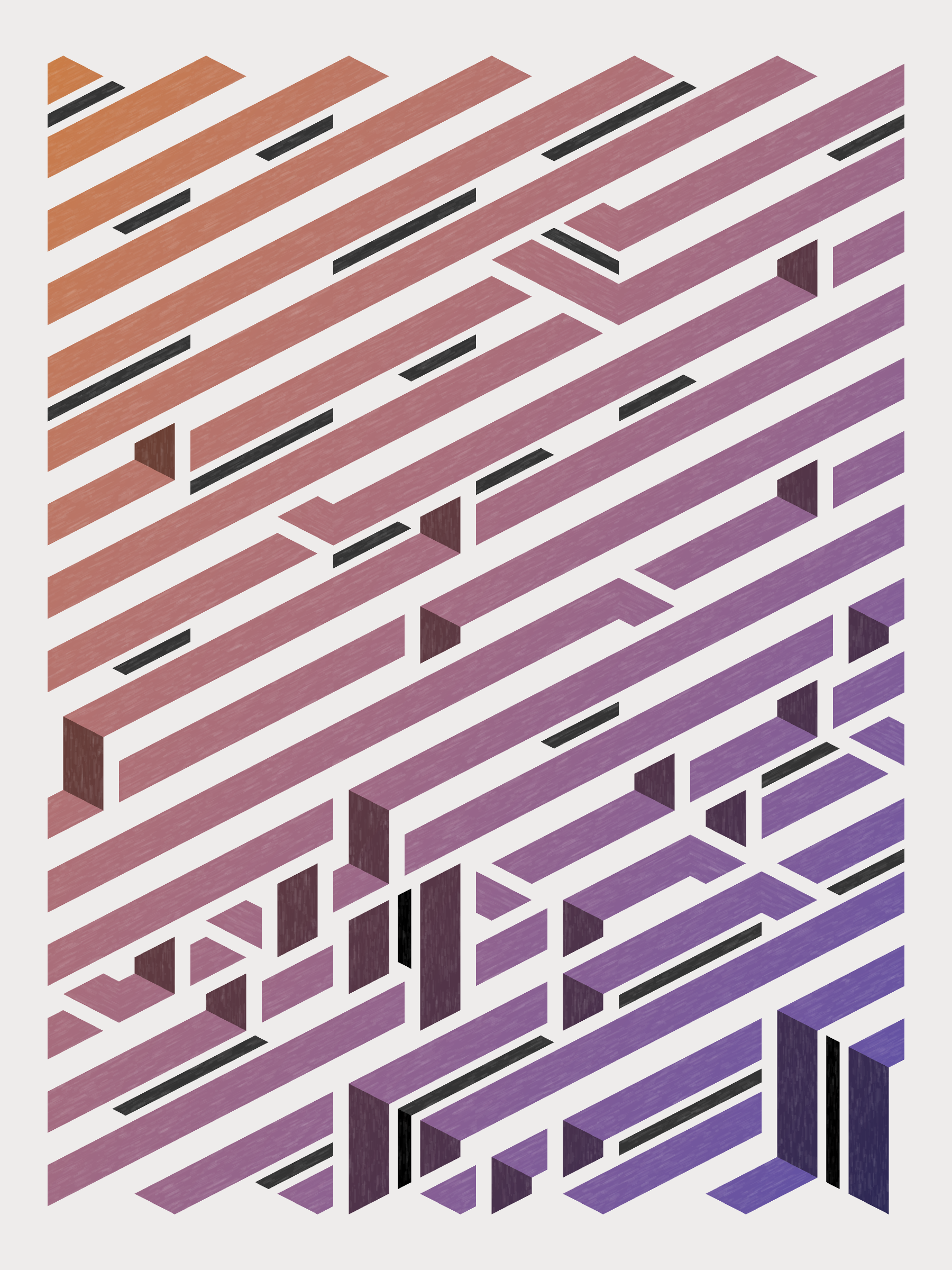 Lines are bent and shaded. There are no wrong turns. [Interaction in live view: press 1-7 or left/right arrow keys to see the stages of sketch construction: 1-grid, 2-divide, 3-tile, 4-bend, 5-shade, 6-color, 7-texture]