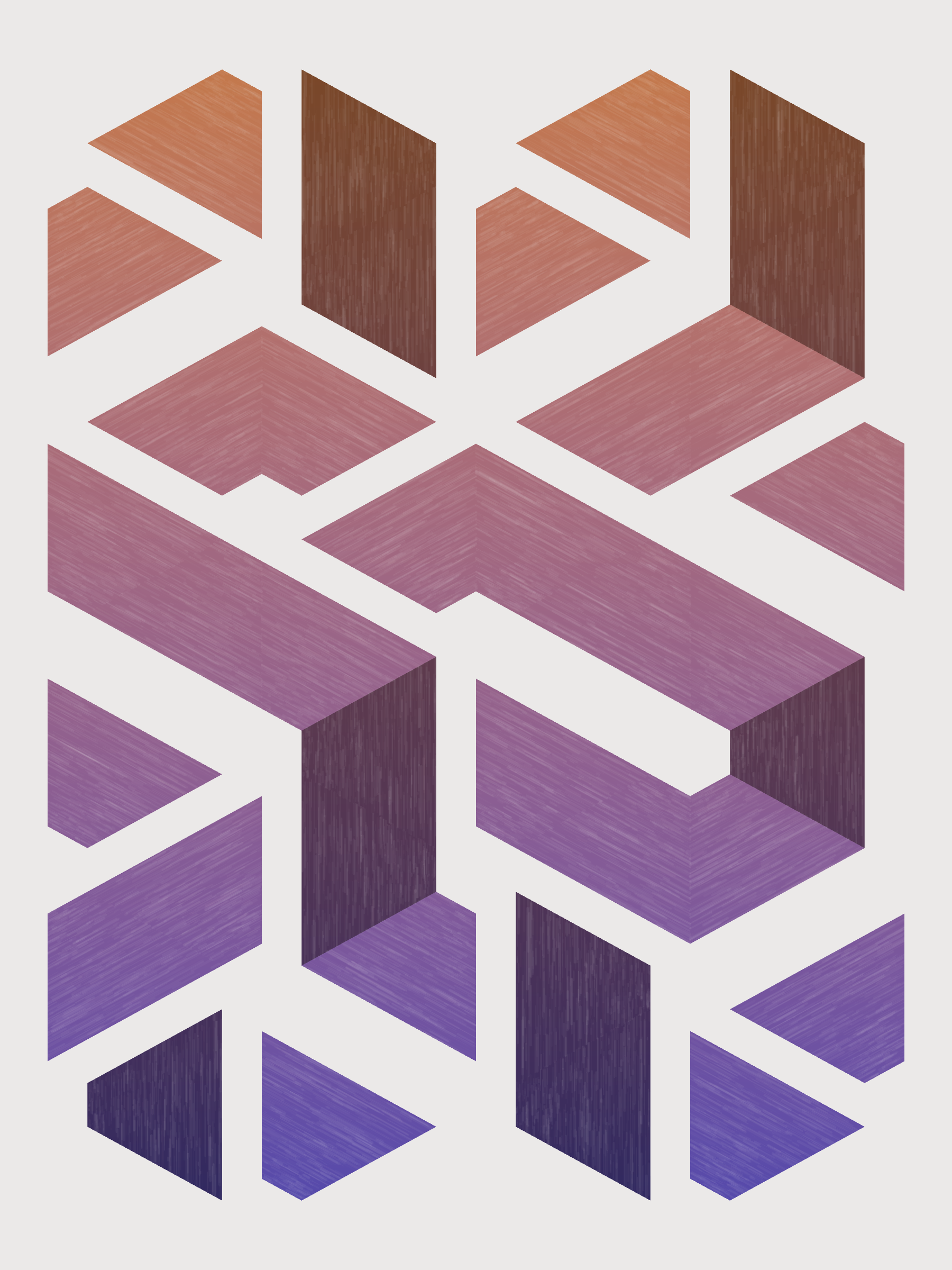 Lines are bent and shaded. There are no wrong turns. [Interaction in live view: press 1-7 or left/right arrow keys to see the stages of sketch construction: 1-grid, 2-divide, 3-tile, 4-bend, 5-shade, 6-color, 7-texture]