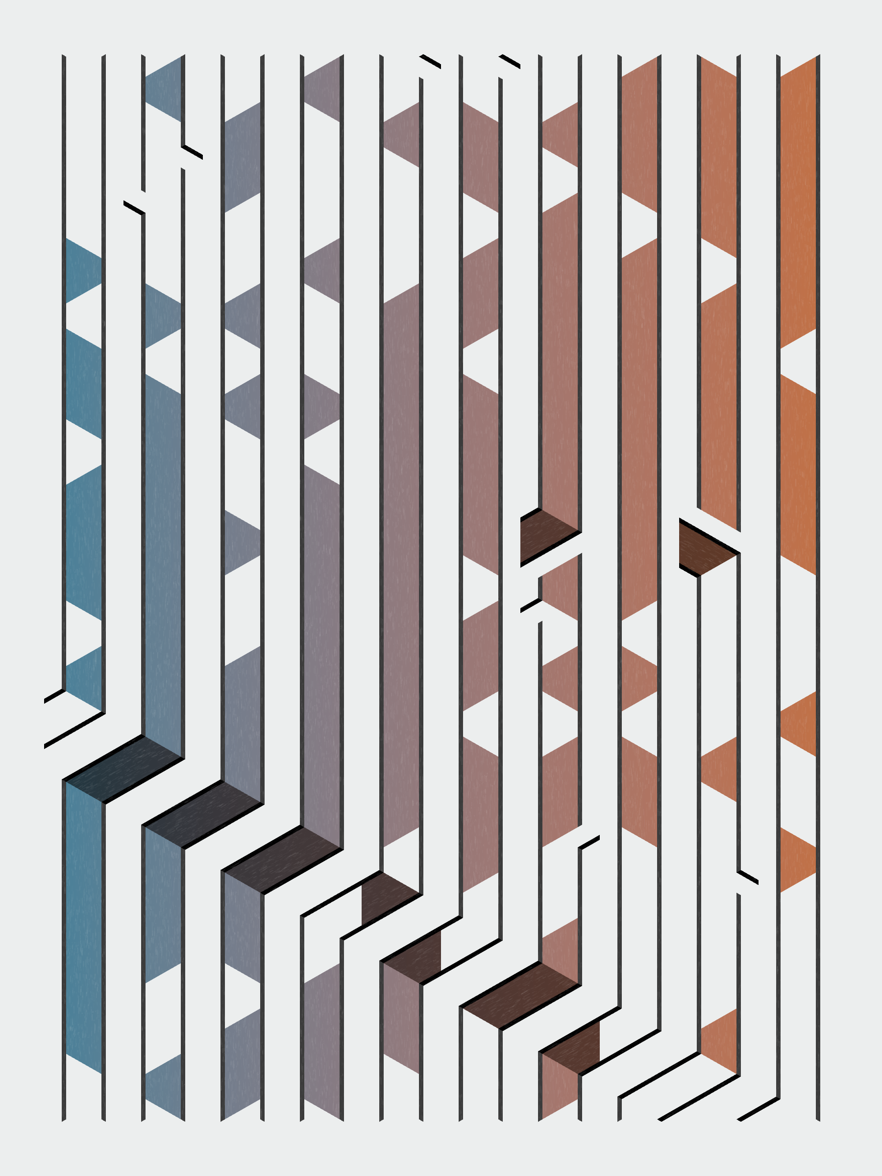 Lines are bent and shaded. There are no wrong turns. [Interaction in live view: press 1-7 or left/right arrow keys to see the stages of sketch construction: 1-grid, 2-divide, 3-tile, 4-bend, 5-shade, 6-color, 7-texture]