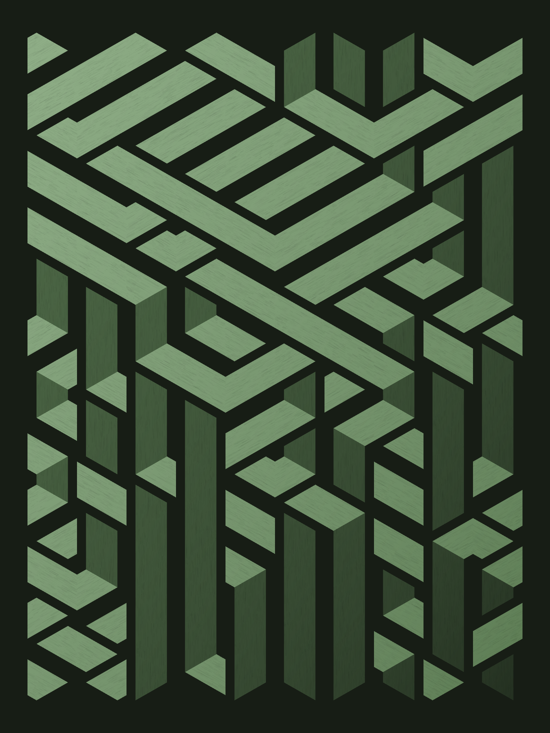 Lines are bent and shaded. There are no wrong turns. [Interaction in live view: press 1-7 or left/right arrow keys to see the stages of sketch construction: 1-grid, 2-divide, 3-tile, 4-bend, 5-shade, 6-color, 7-texture]